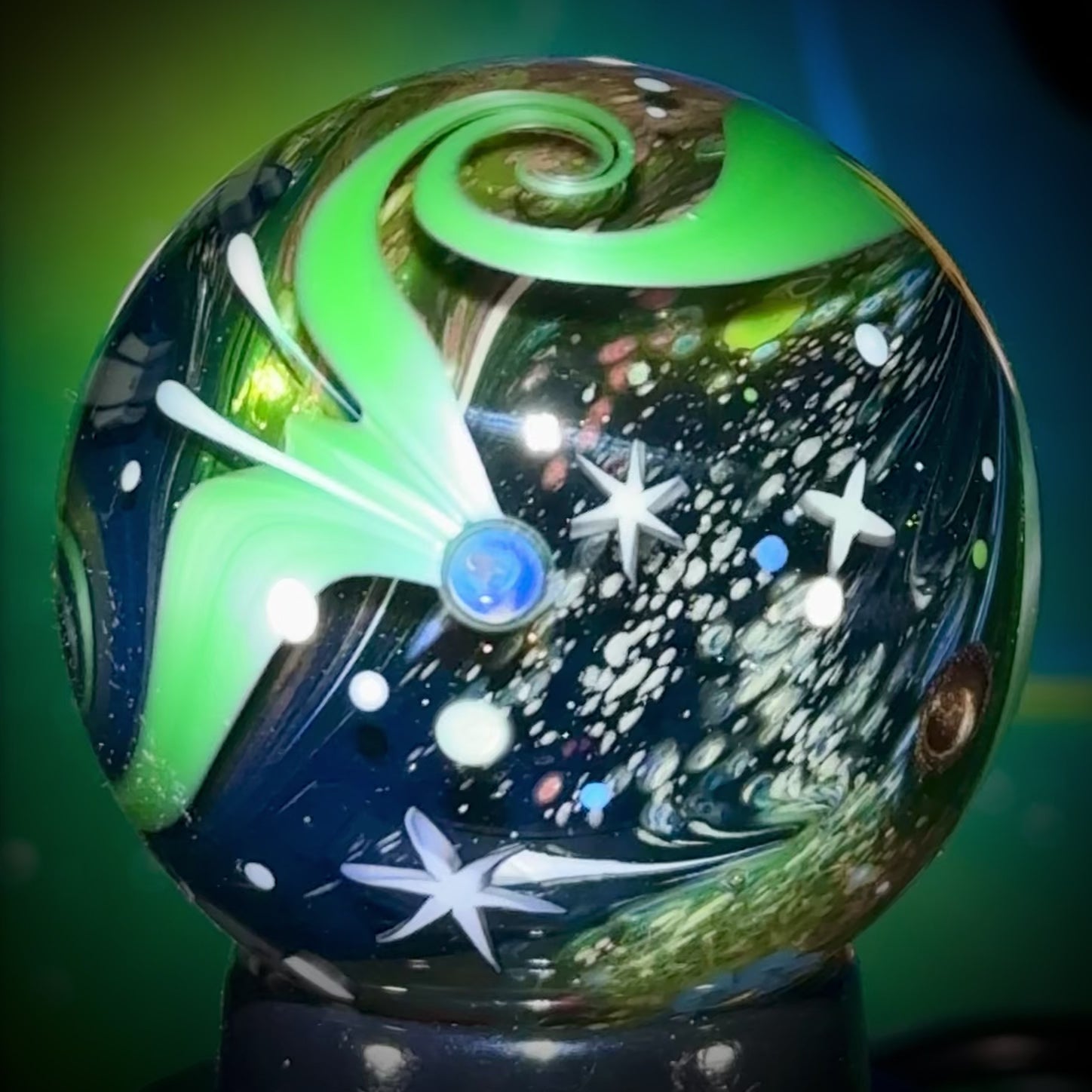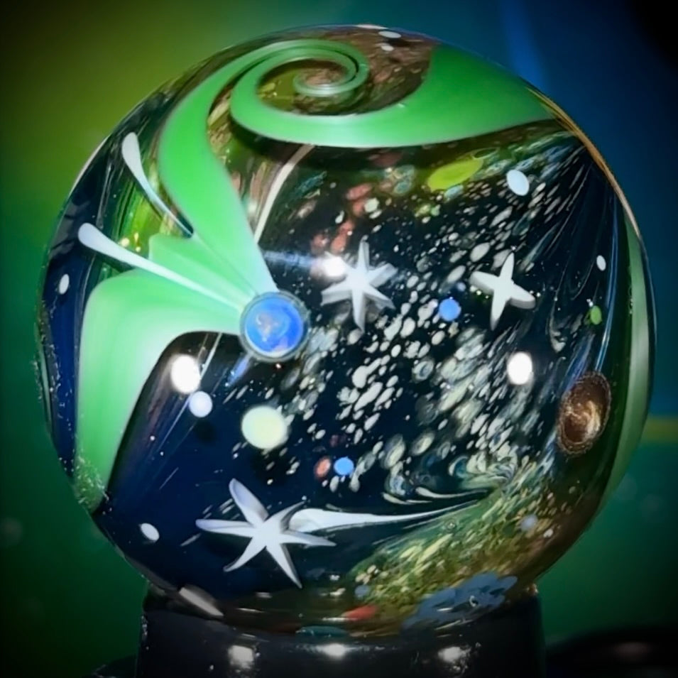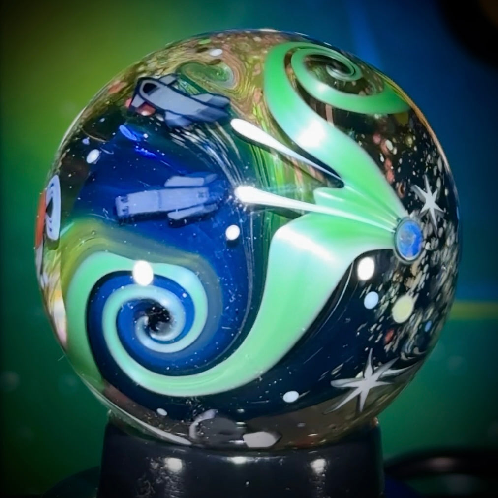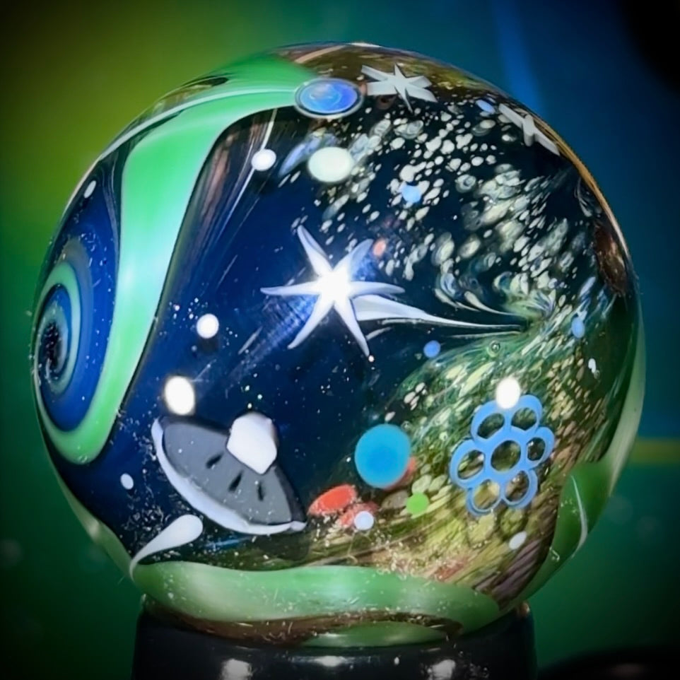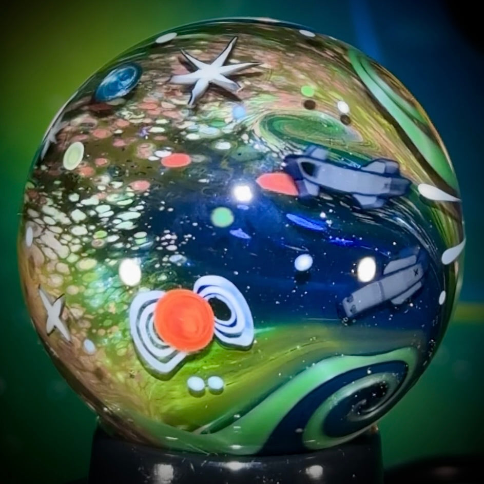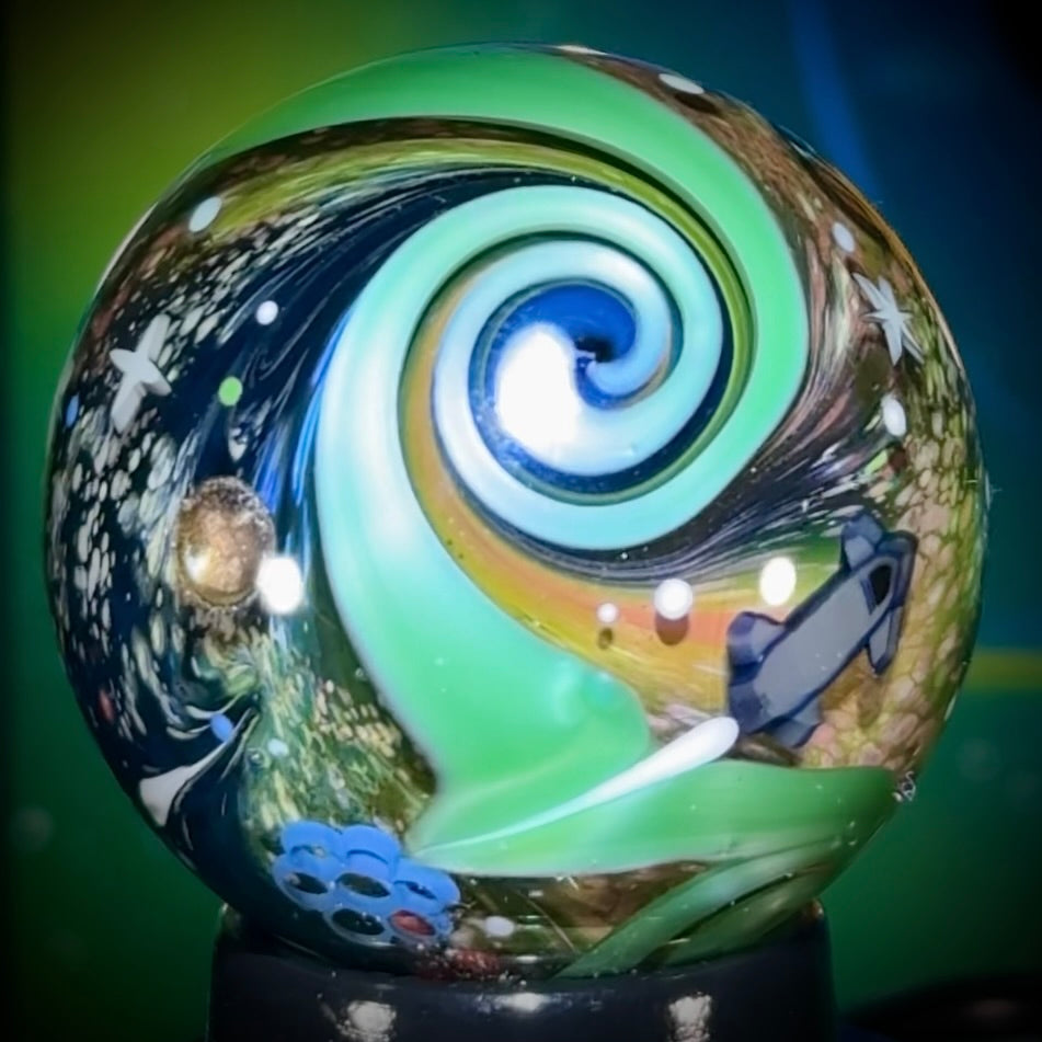 The NU marble series features over 40 NU millies, and some classics, including but not limited to: 4 new stars, a @SpaceX Starship & Booster, a Starling satellite, new UV ufo’s, and a Dragon Capsule & Spacewalker to name a few. ‘NU-Classic’ was built on the cornerstone of my classic mono-layered Intergalactic space but now with multi-layering and more tech-stacking.