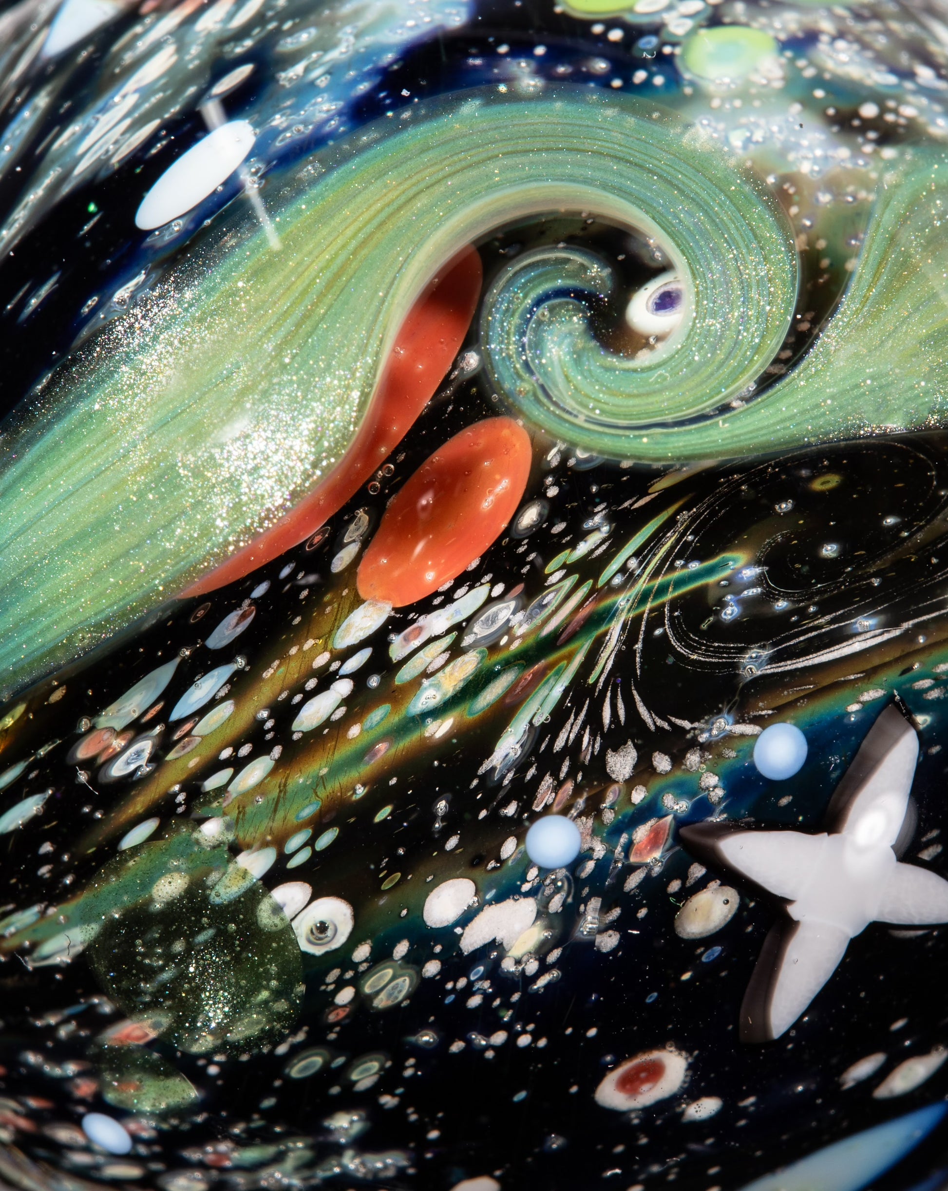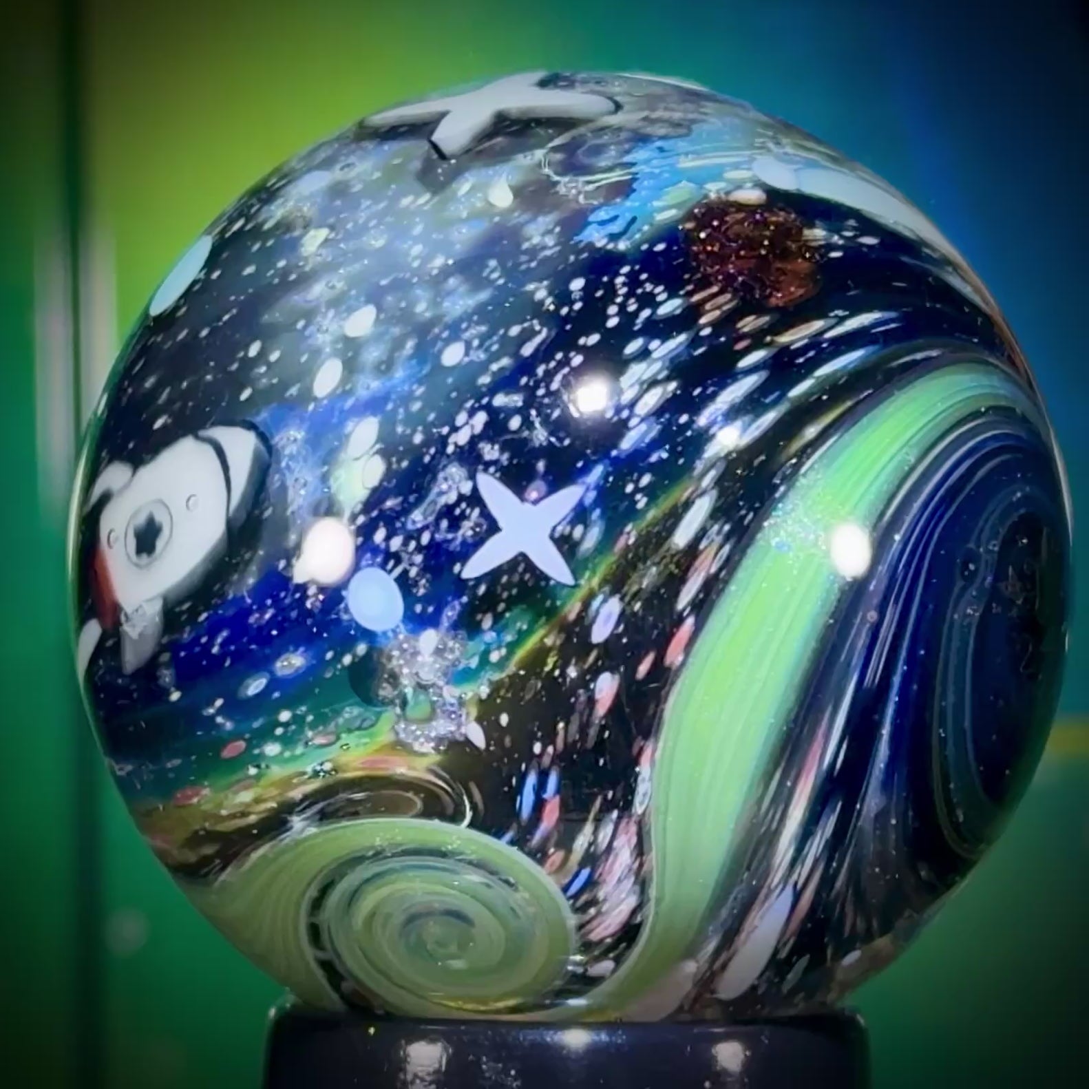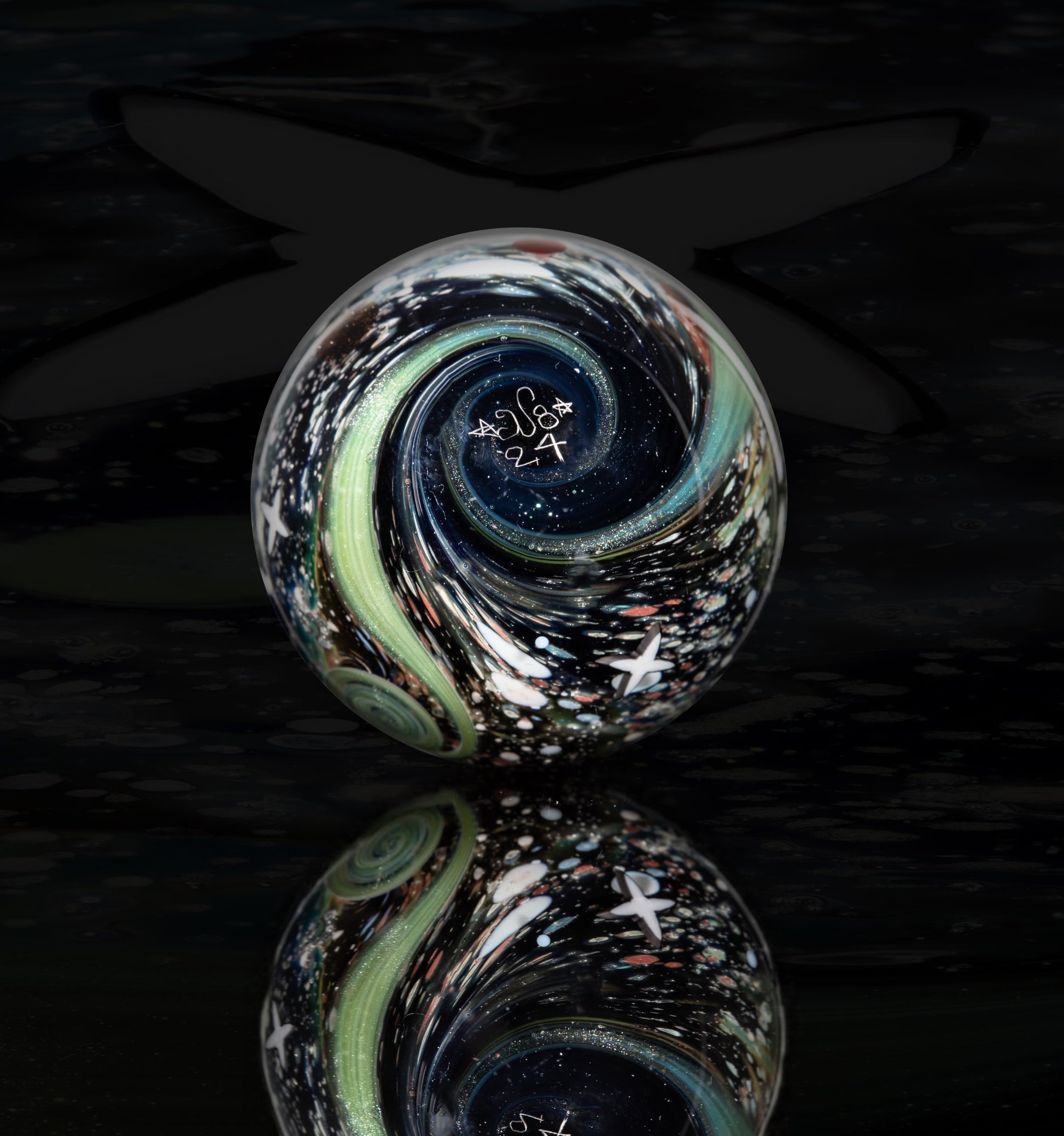 The NU marble series features over 40 NU millies, and some classics, including but not limited to: 4 new stars, a @SpaceX Starship & Booster, a Starling satellite, new UV ufo’s, and a Dragon Capsule & Spacewalker to name a few. ‘NU-Classic’ was built on the cornerstone of my classic mono-layered Intergalactic space but now with multi-layering and more tech-stacks.