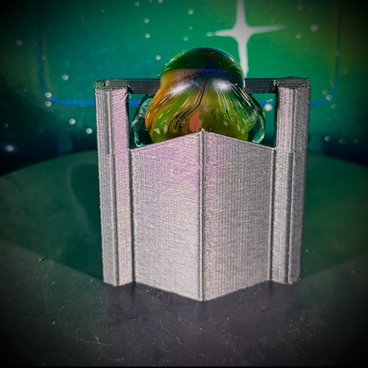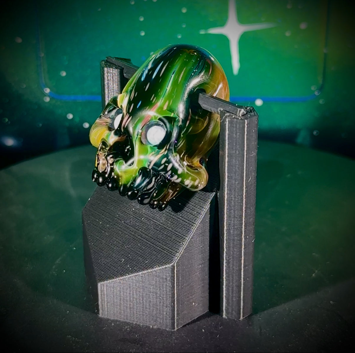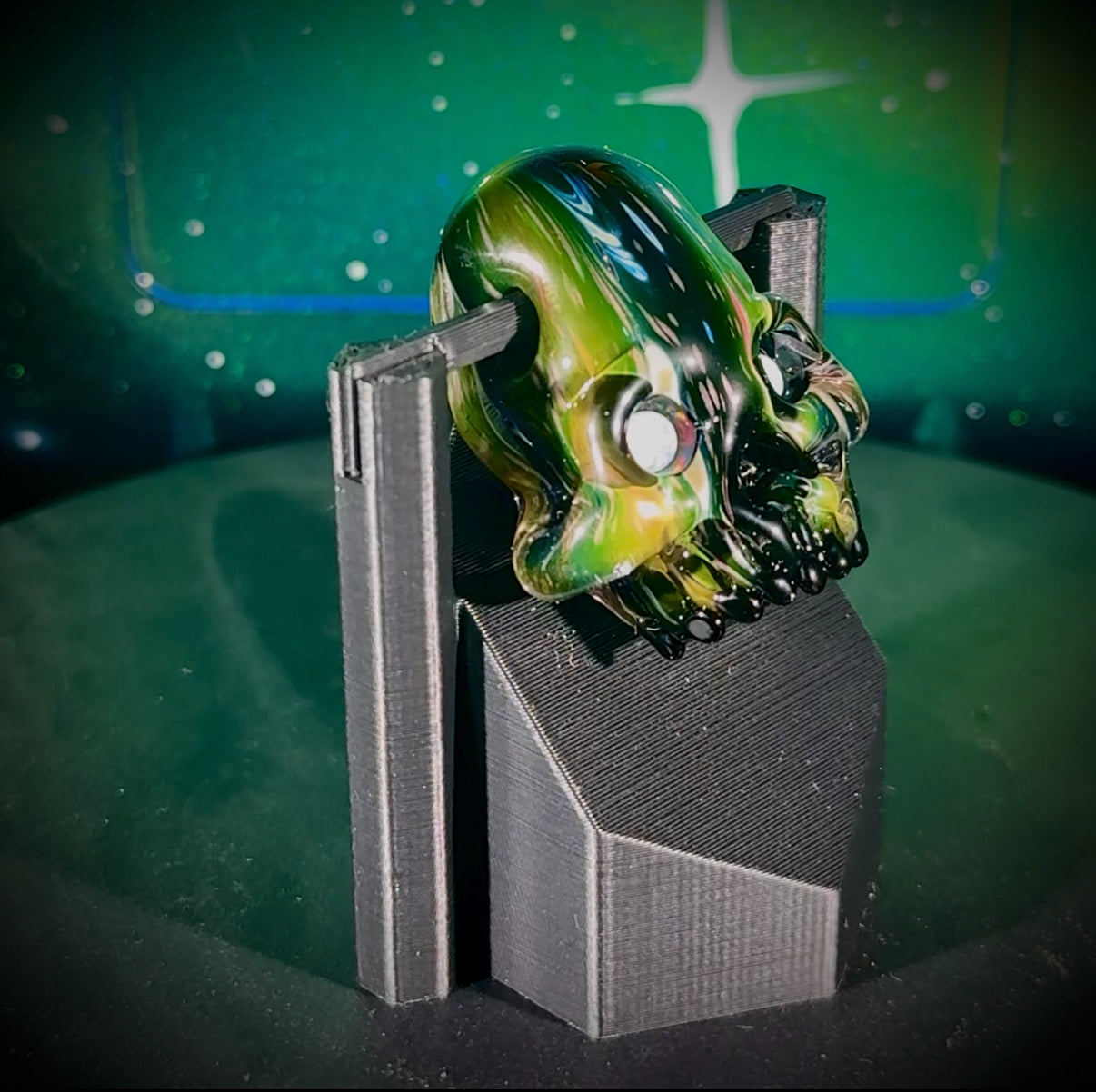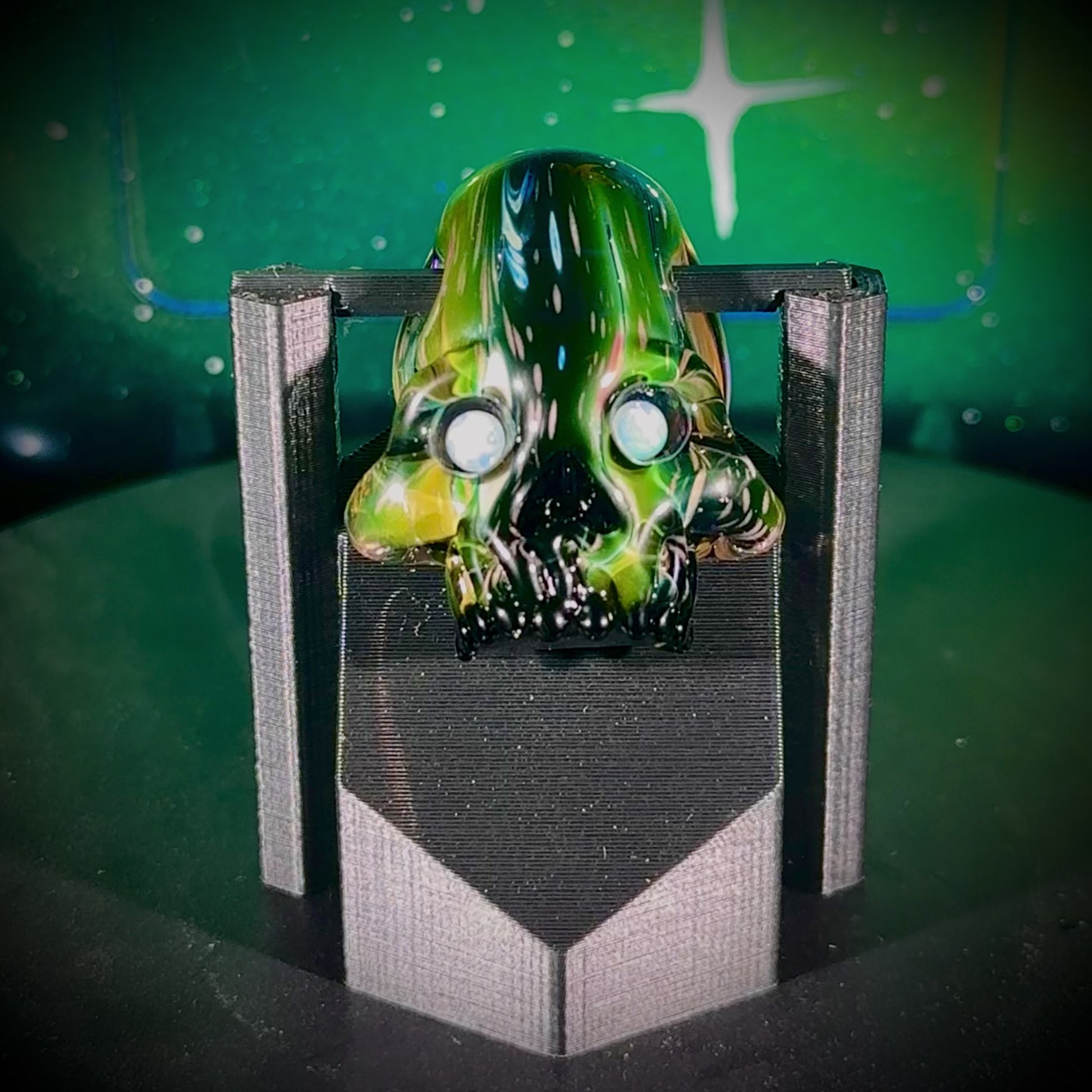 AKM x N8 Mini Skull Pendant made with N8's Classic Space w/two small opal eyes. Bail can accommodate a 4.5mm chain. 29mm wide (lobe to lobe), and 35mm tall. Weighs .65oz