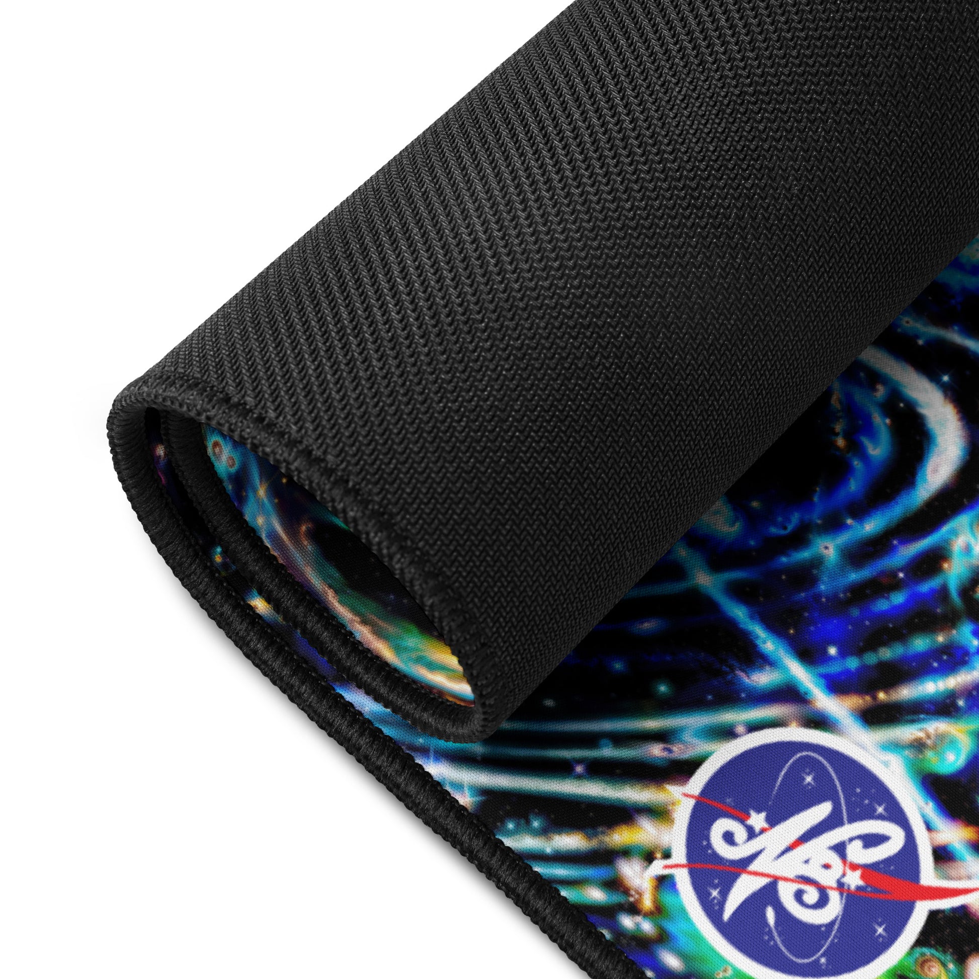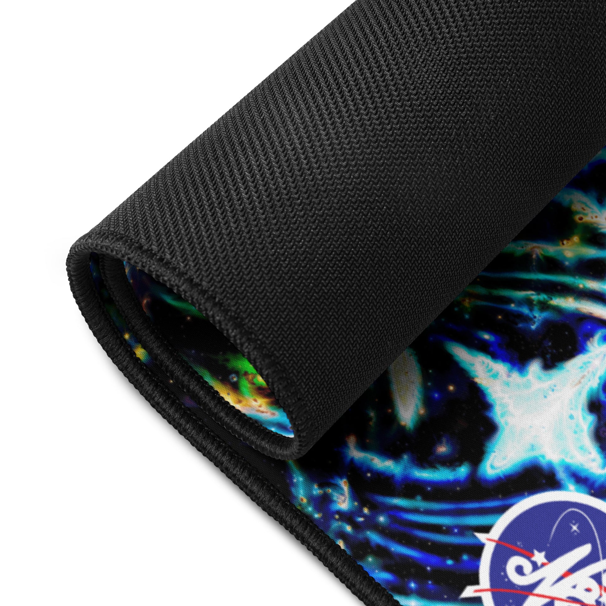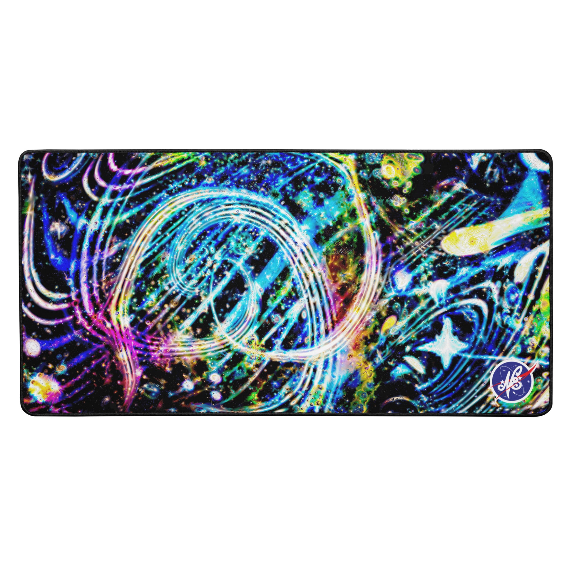 Perfect for galactic gaming sessions, or conquering cosmic computational projects at your desktop, this smooth, anti-slip surface locks your setup in orbit. These fully expansive images of N8's Intergalactic glass work offer light-years of space with vibrant edge-to-edge designs, while the hemmed edges ensure your mat stays intact through your all-nighter side quests.