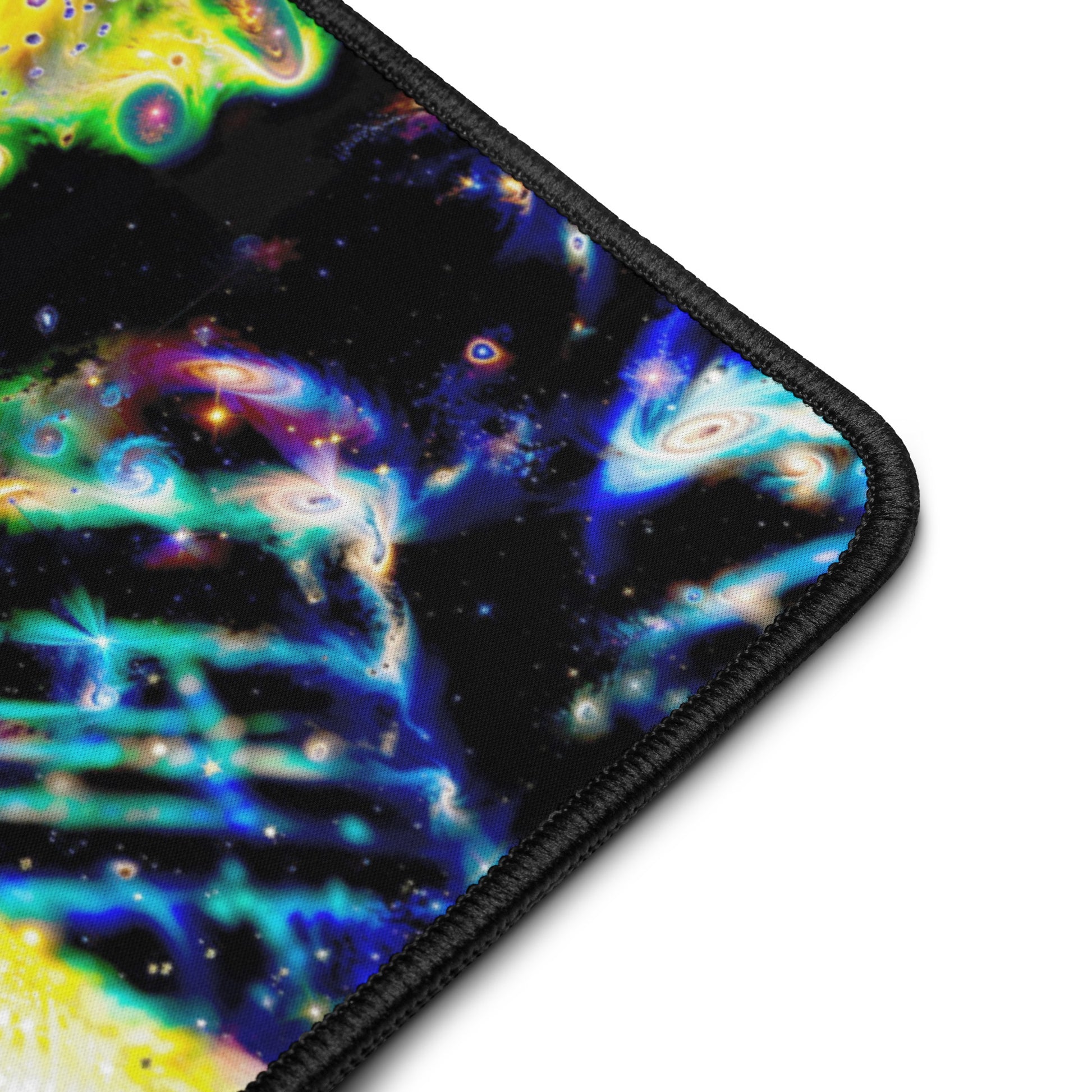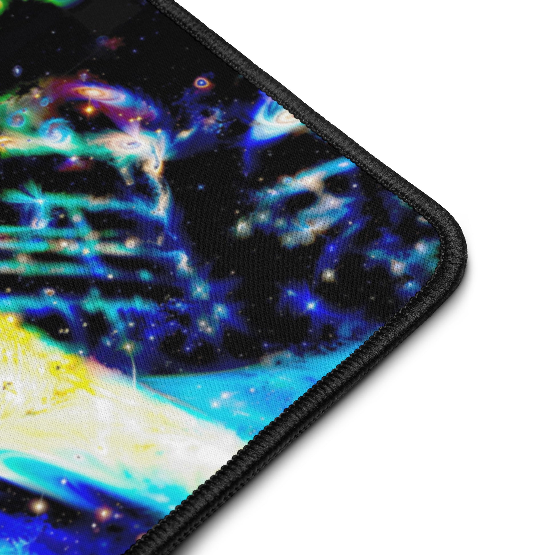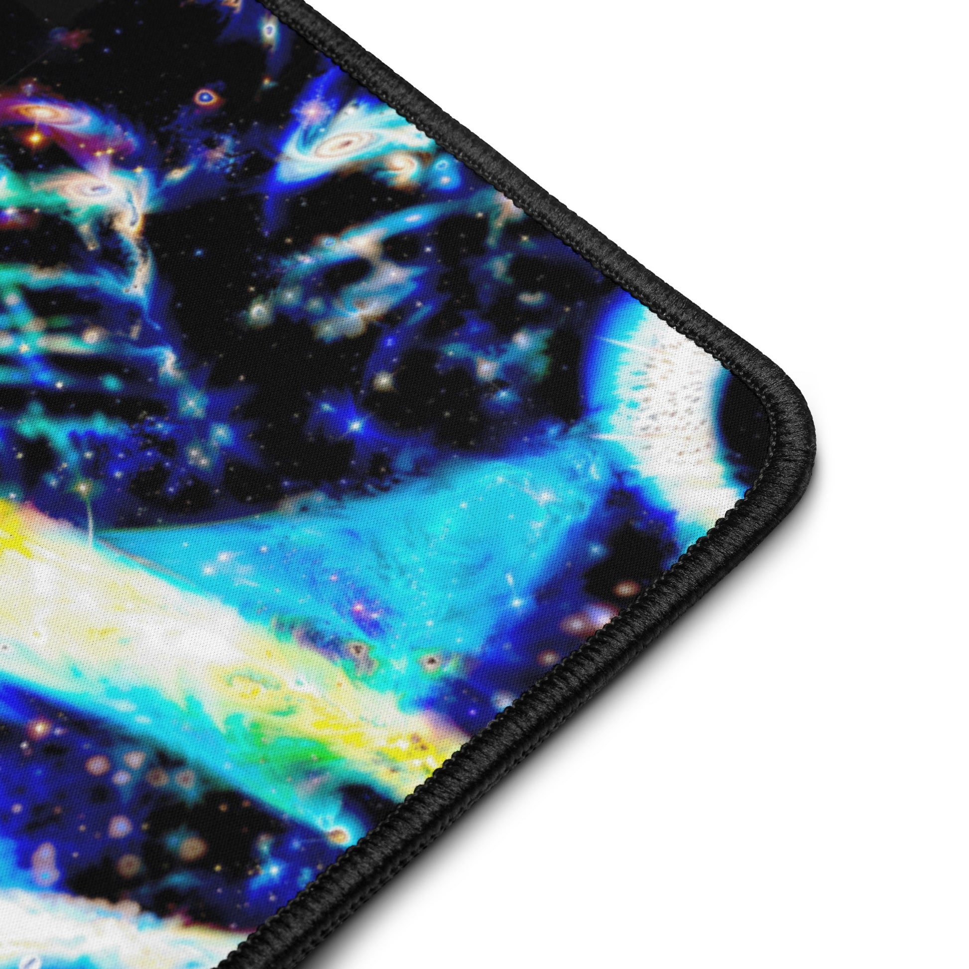Perfect for galactic gaming sessions, or conquering cosmic computational projects at your desktop, this smooth, anti-slip surface locks your setup in orbit. These fully expansive images of N8's Intergalactic glass work offer light-years of space with vibrant edge-to-edge designs, while the hemmed edges ensure your mat stays intact through your all-nighter side quests.