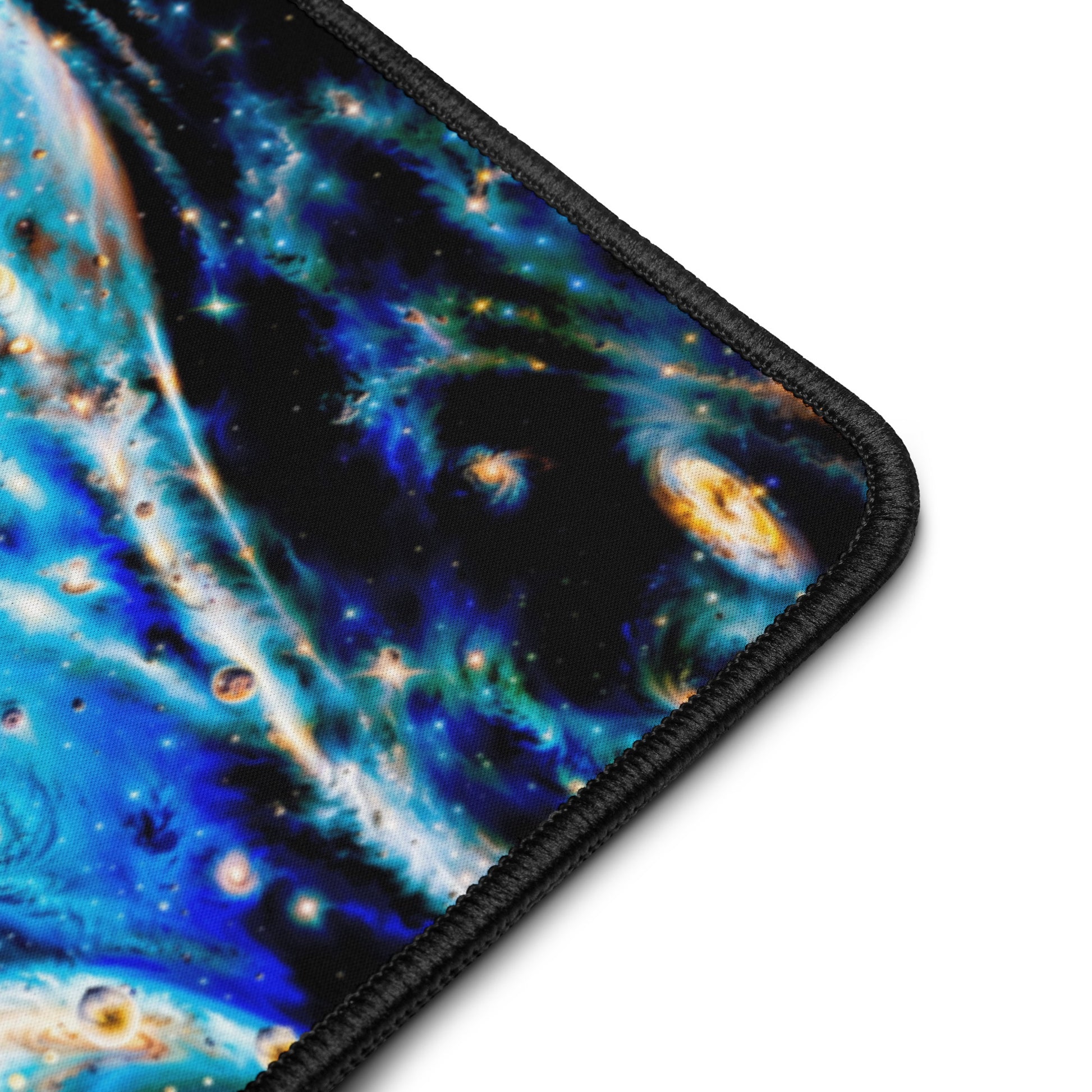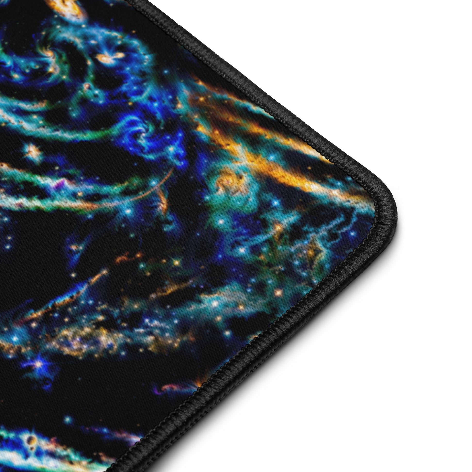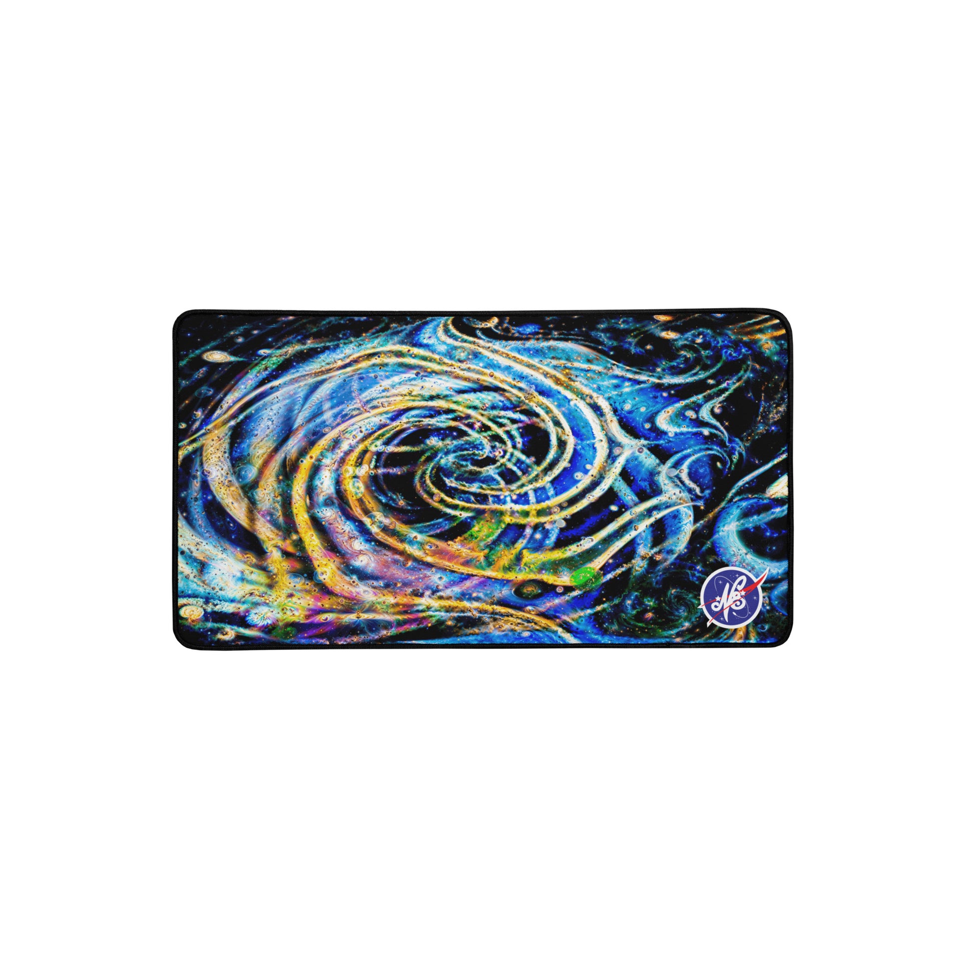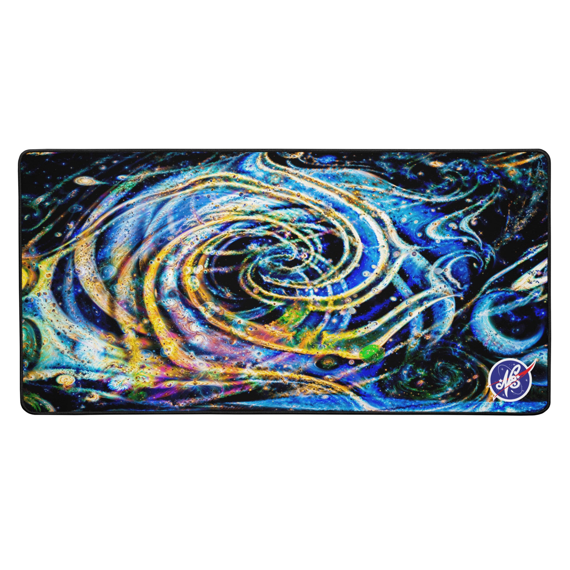 Perfect for galactic gaming sessions, or conquering cosmic computational projects at your desktop, this smooth, anti-slip surface locks your setup in orbit. These fully expansive images of N8's Intergalactic glass work offer light-years of space with vibrant edge-to-edge designs, while the hemmed edges ensure your mat stays intact through your all-nighter side quests.