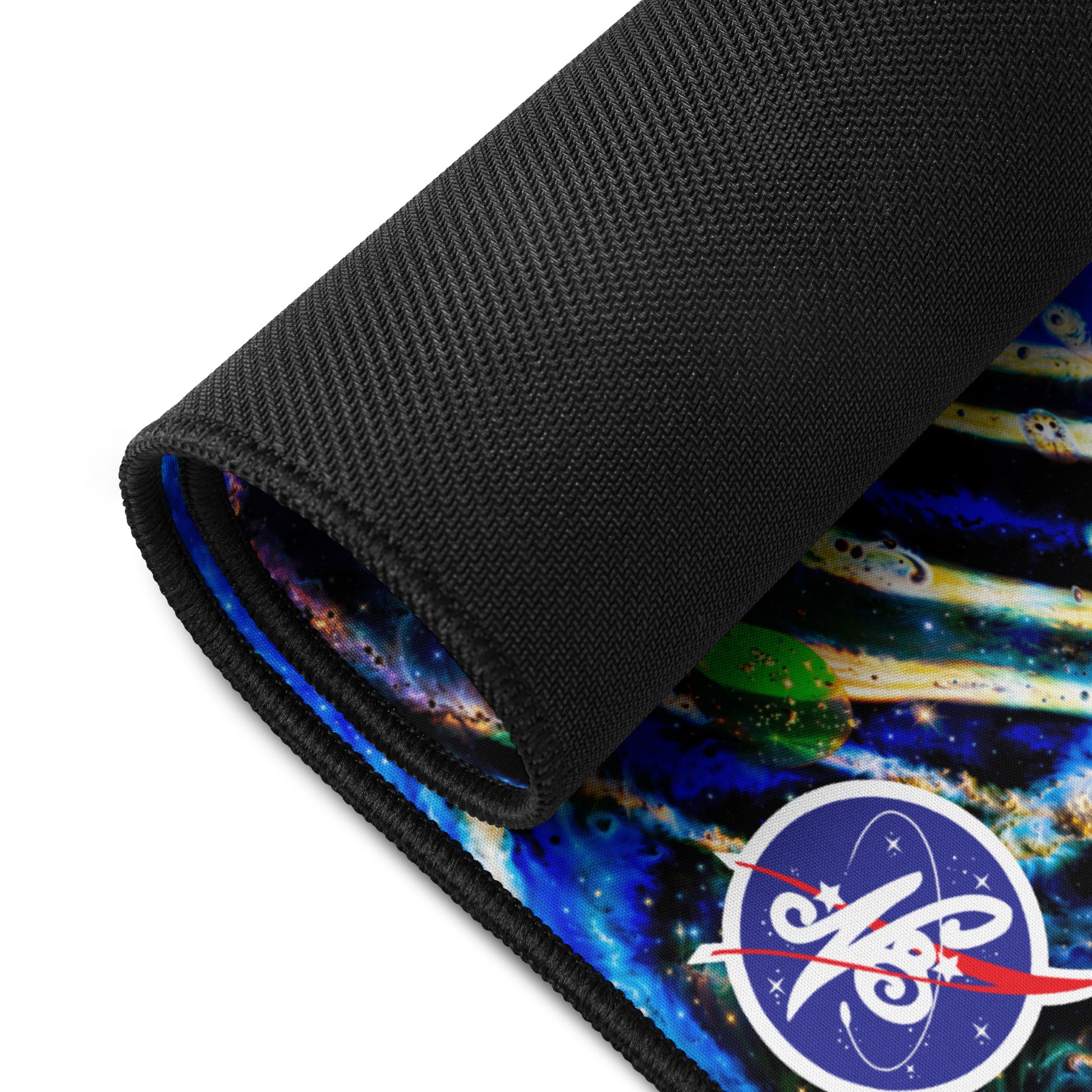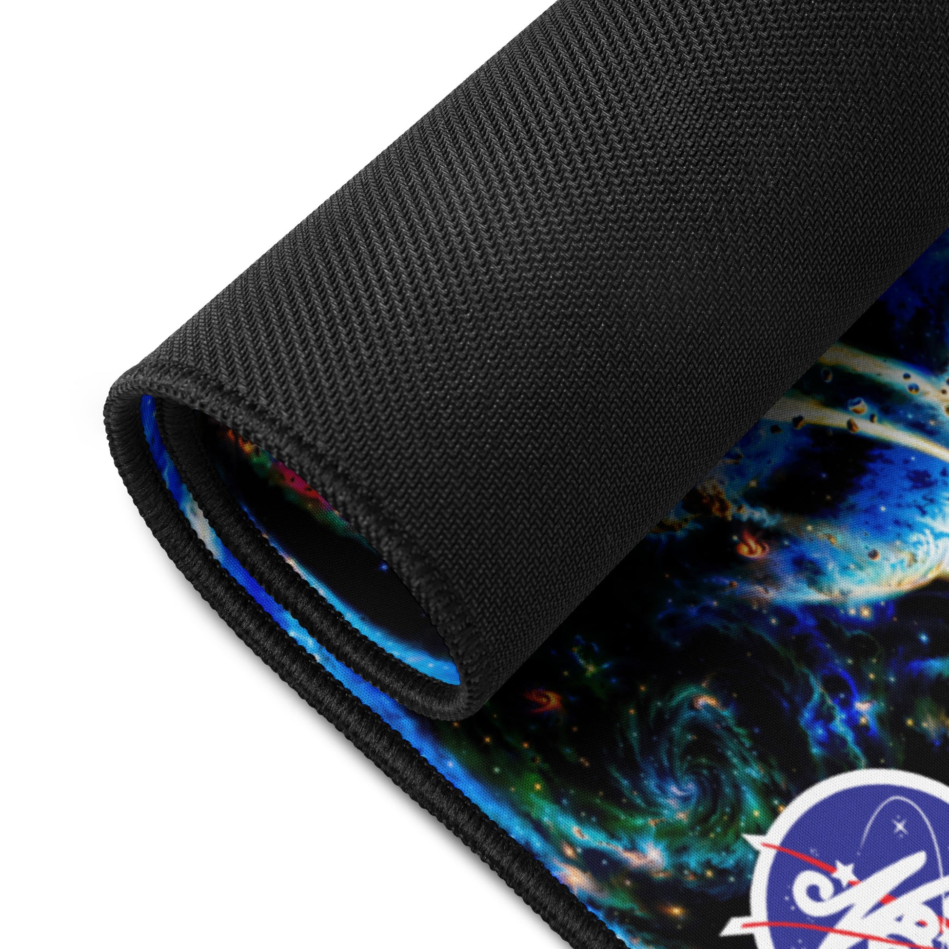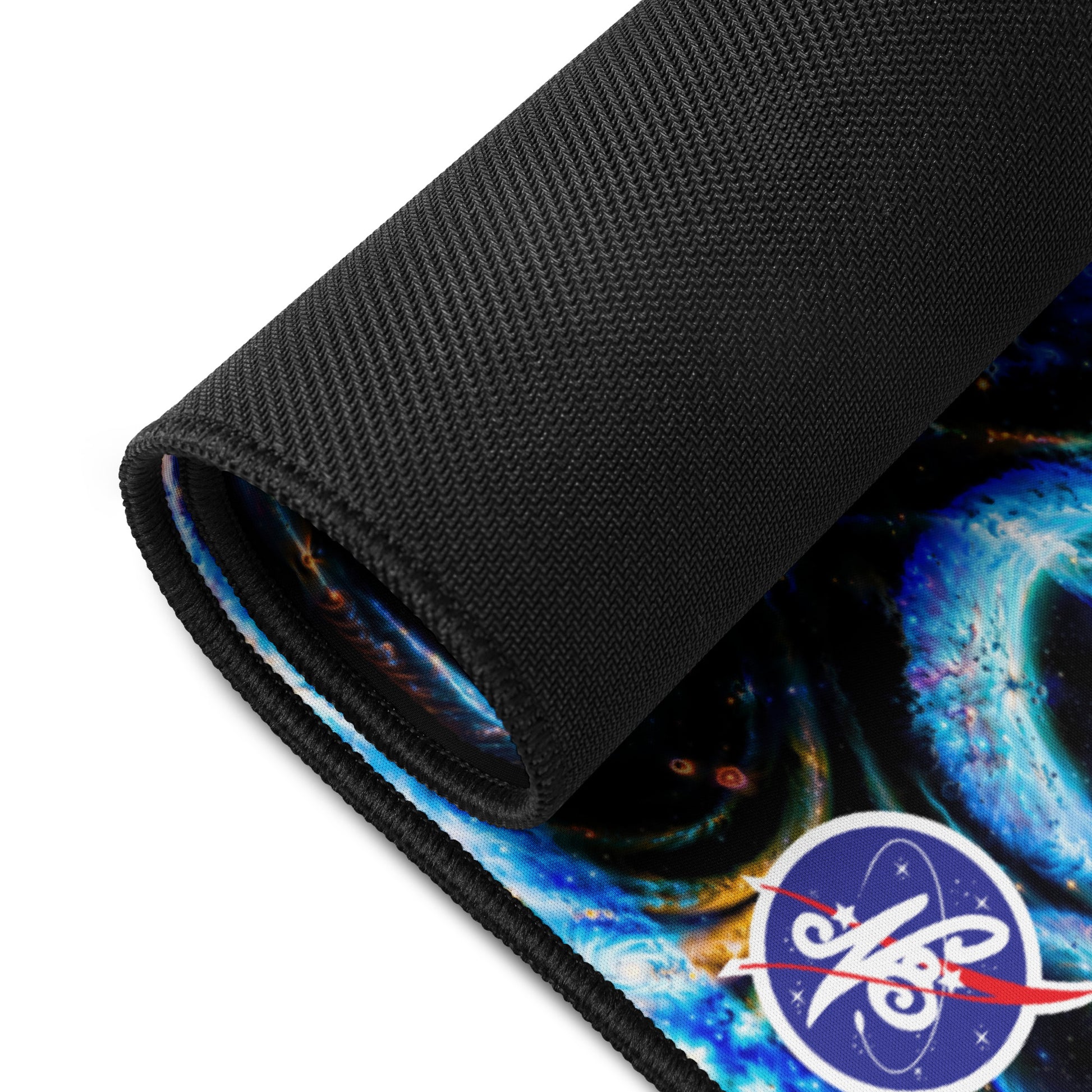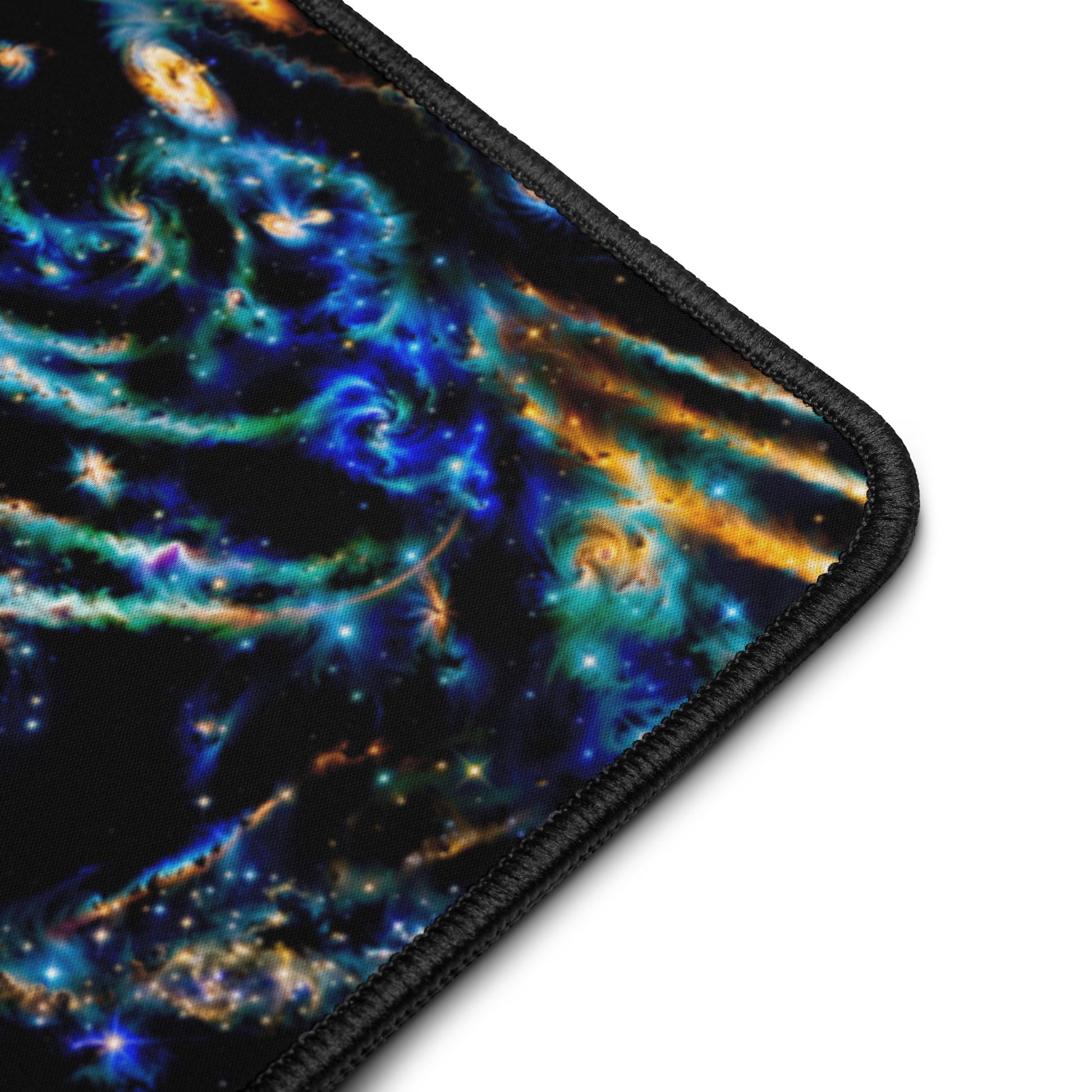 Perfect for galactic gaming sessions, or conquering cosmic computational projects at your desktop, this smooth, anti-slip surface locks your setup in orbit. These fully expansive images of N8's Intergalactic glass work offer light-years of space with vibrant edge-to-edge designs, while the hemmed edges ensure your mat stays intact through your all-nighter side quests.
