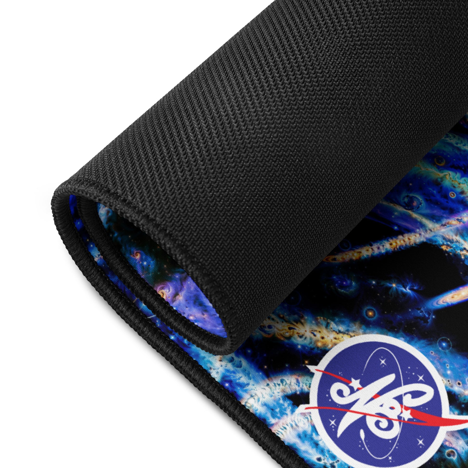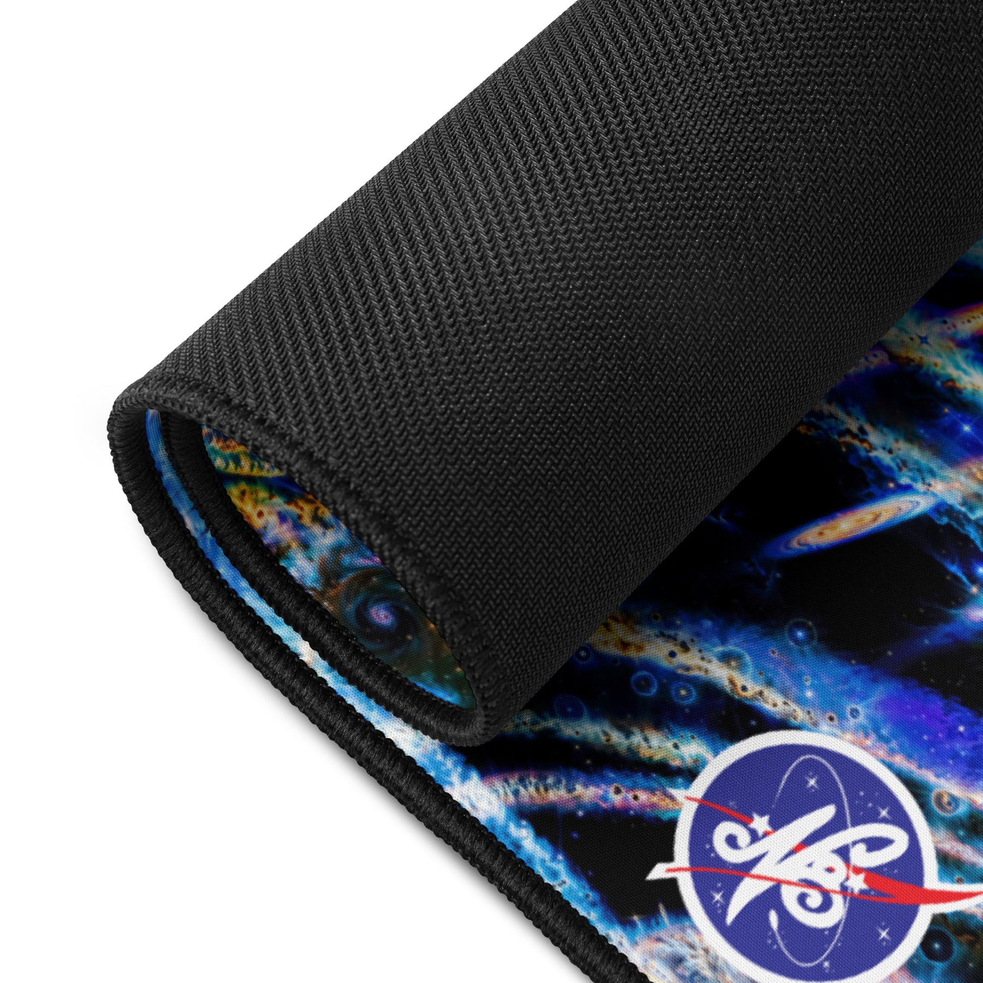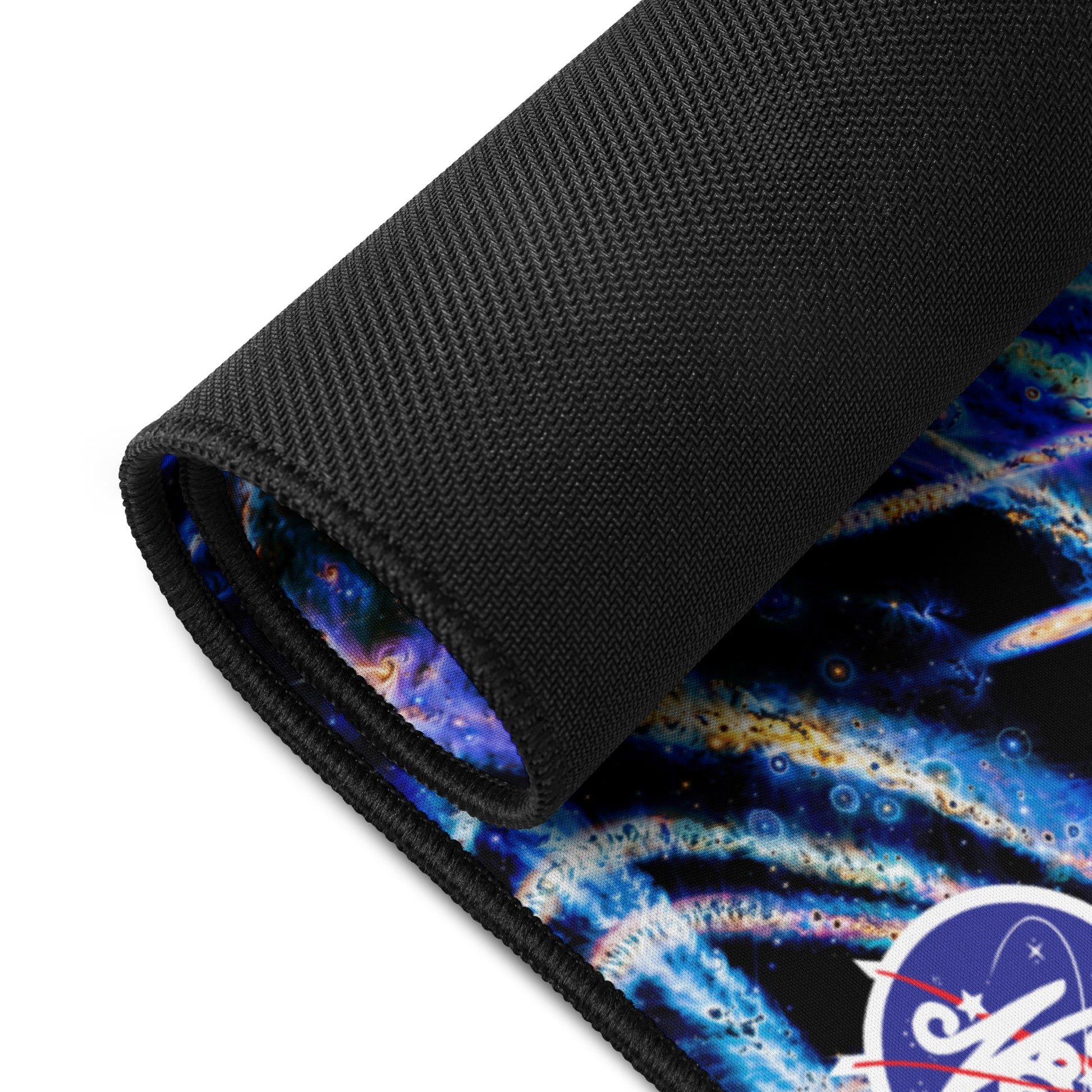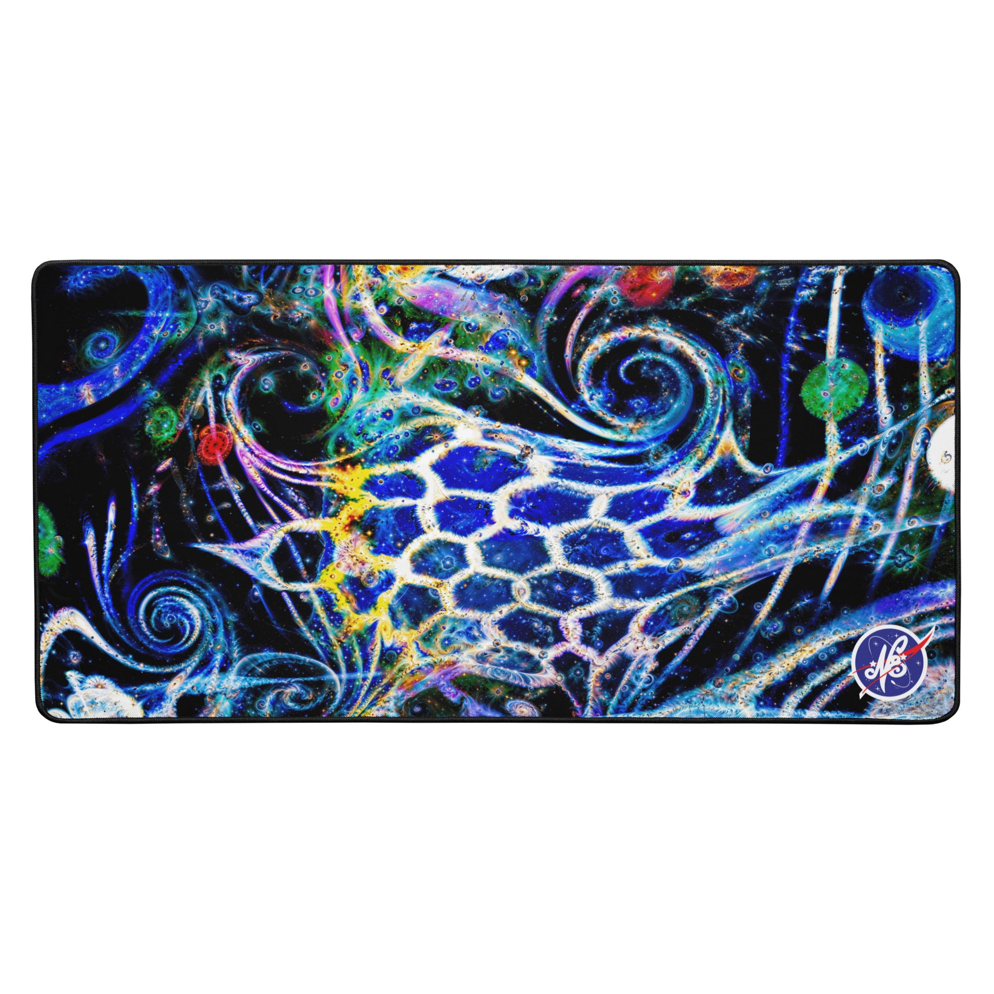 Perfect for galactic gaming sessions, or conquering cosmic computational projects at your desktop, this smooth, anti-slip surface locks your setup in orbit. These fully expansive images of N8's Intergalactic glass work offer light-years of space with vibrant edge-to-edge designs, while the hemmed edges ensure your mat stays intact through your all-nighter side quests.
