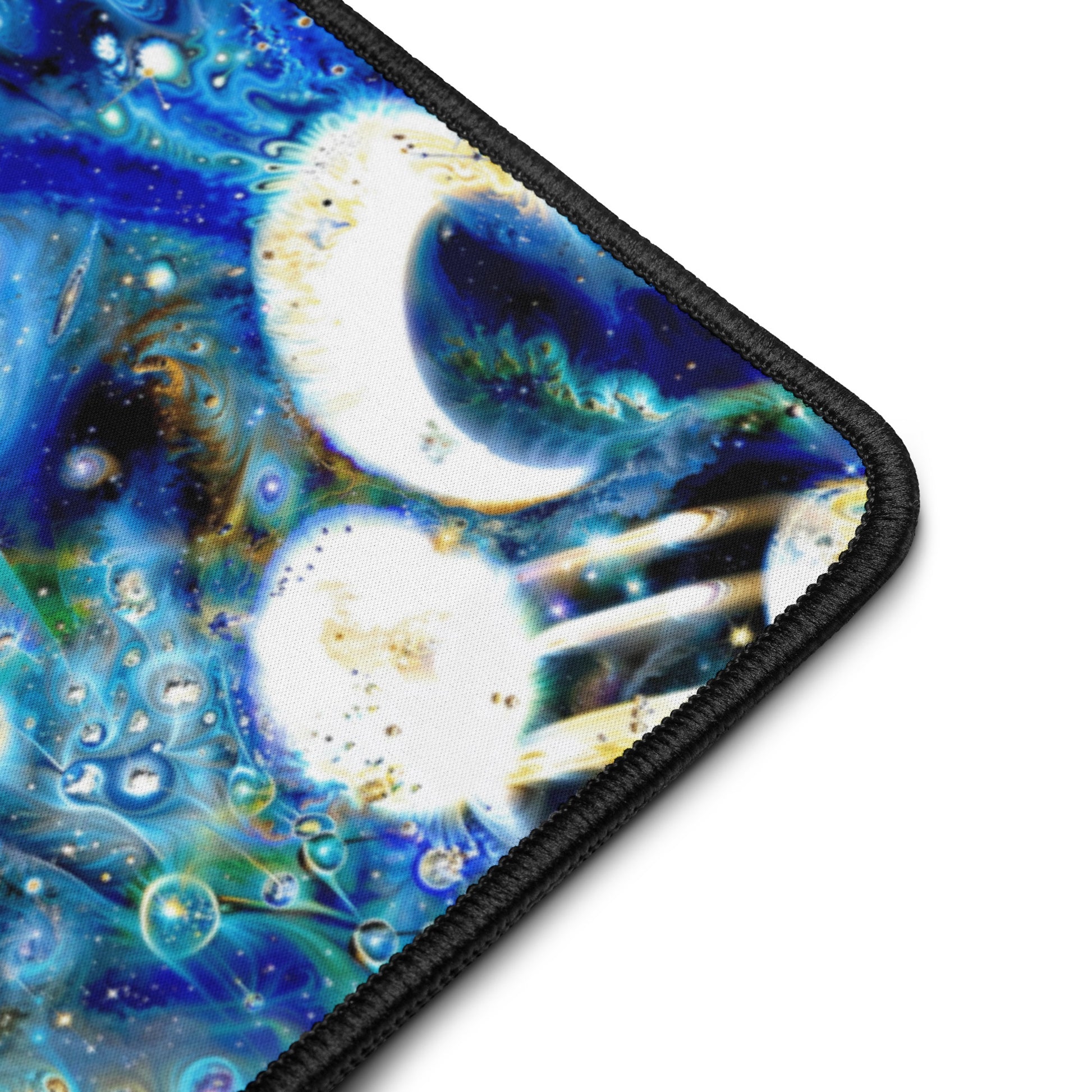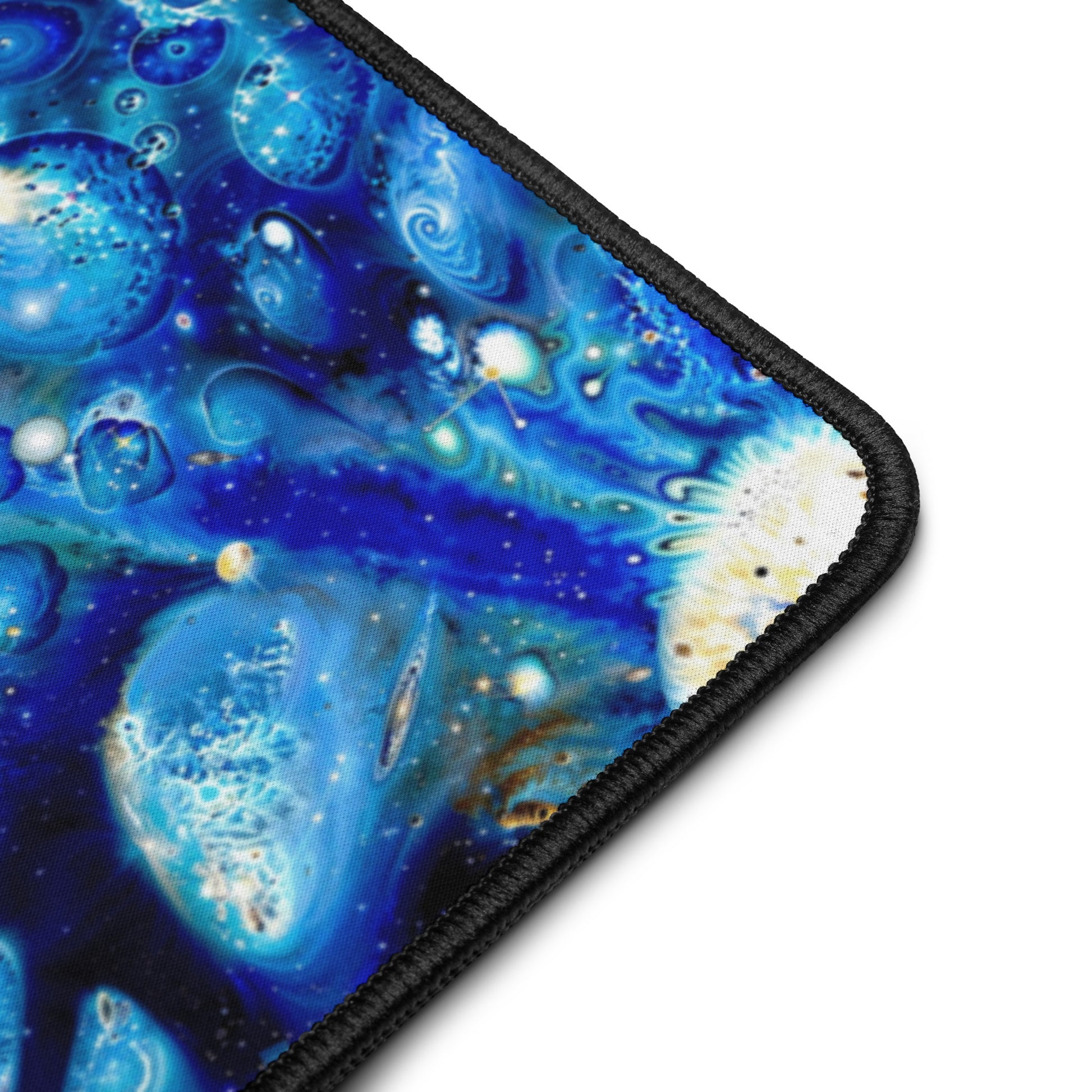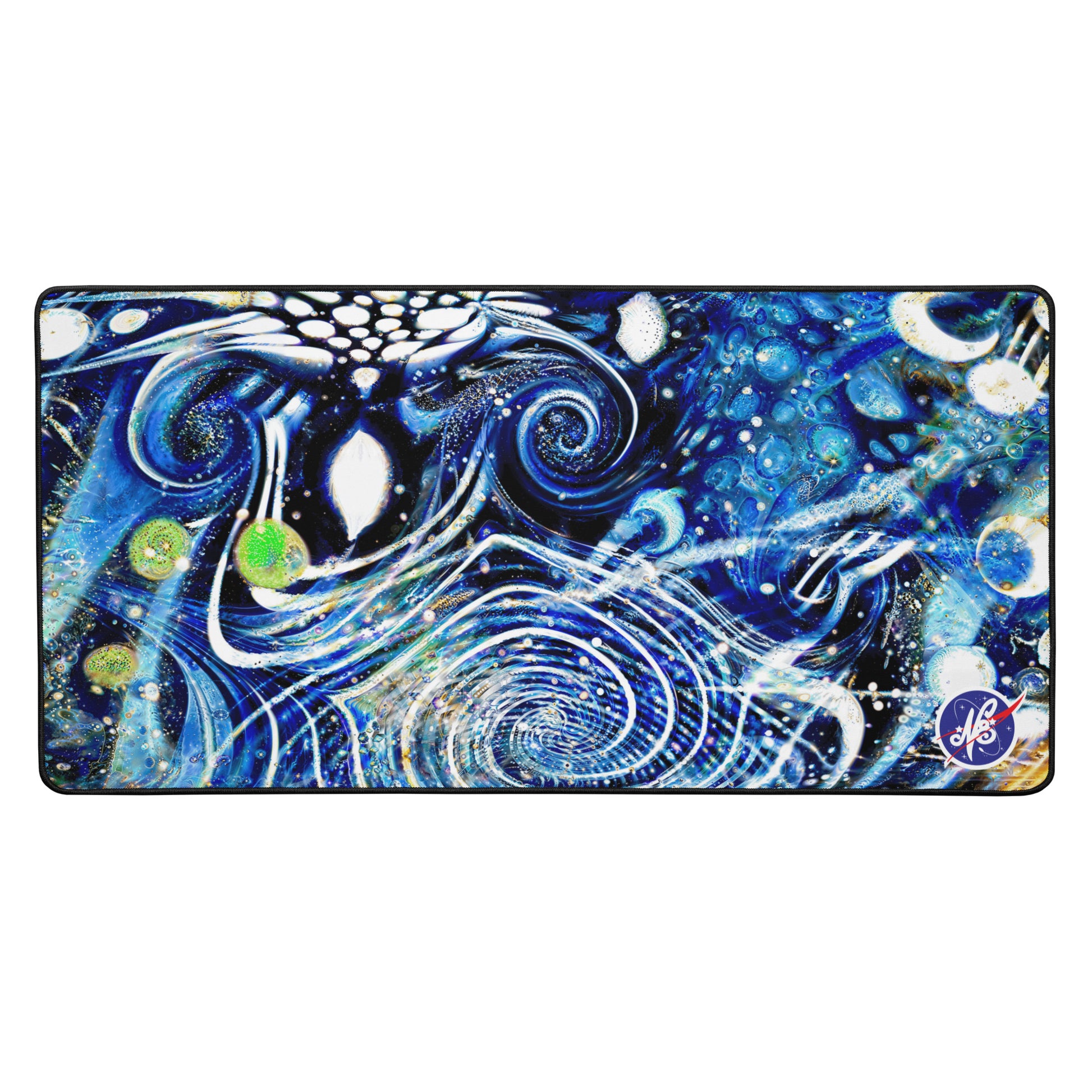 Perfect for galactic gaming sessions, or conquering cosmic computational projects at your desktop, this smooth, anti-slip surface locks your setup in orbit. These fully expansive images of N8's Intergalactic glass work offer light-years of space with vibrant edge-to-edge designs, while the hemmed edges ensure your mat stays intact through your all-nighter side quests.