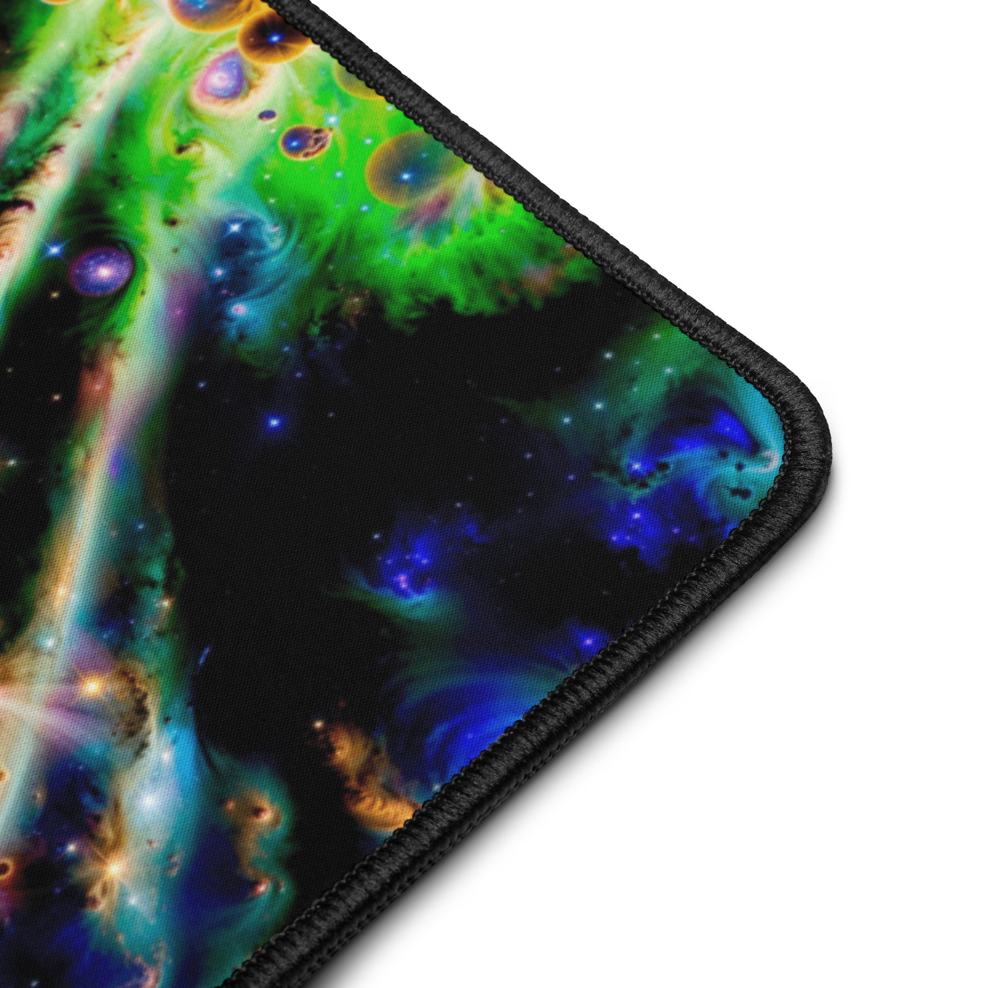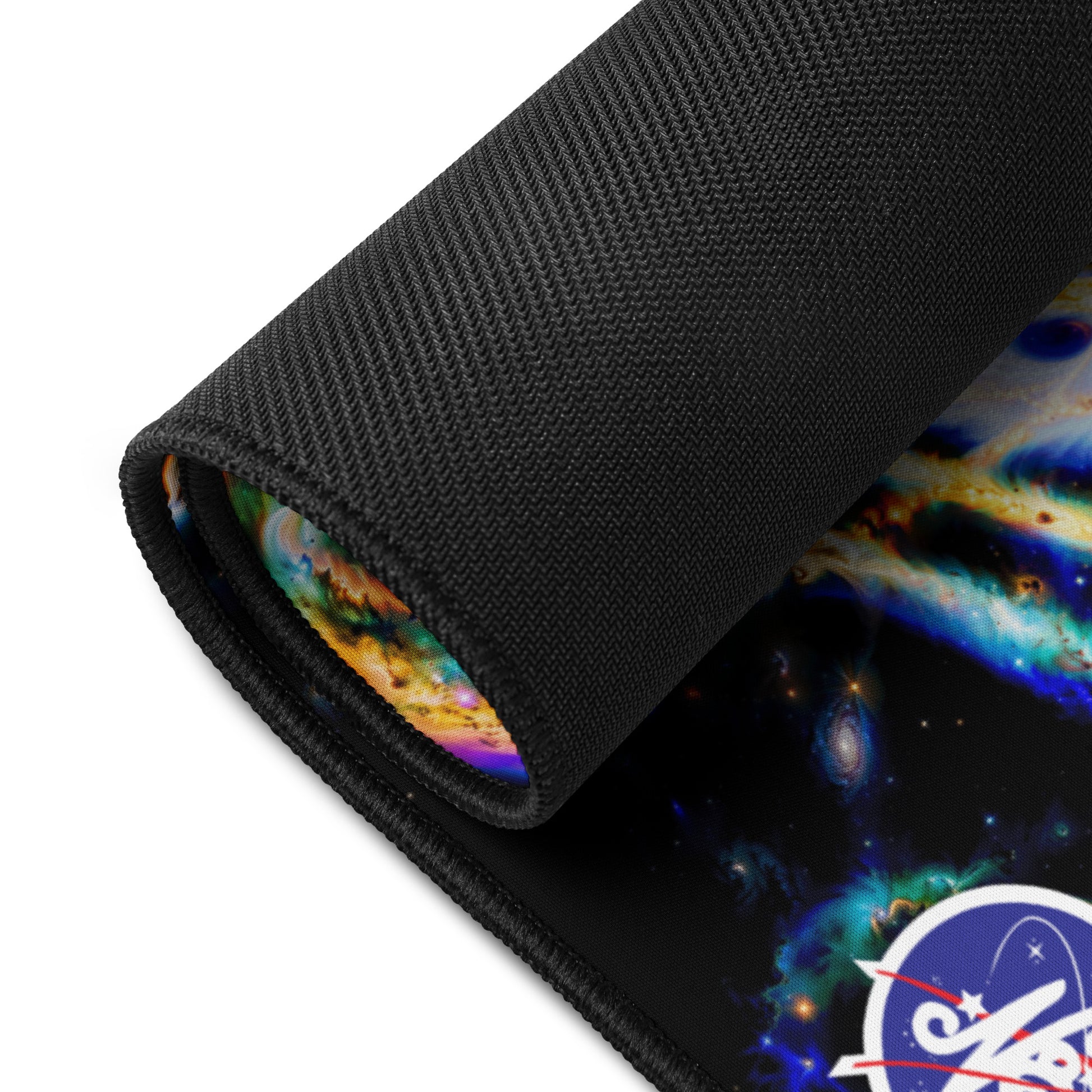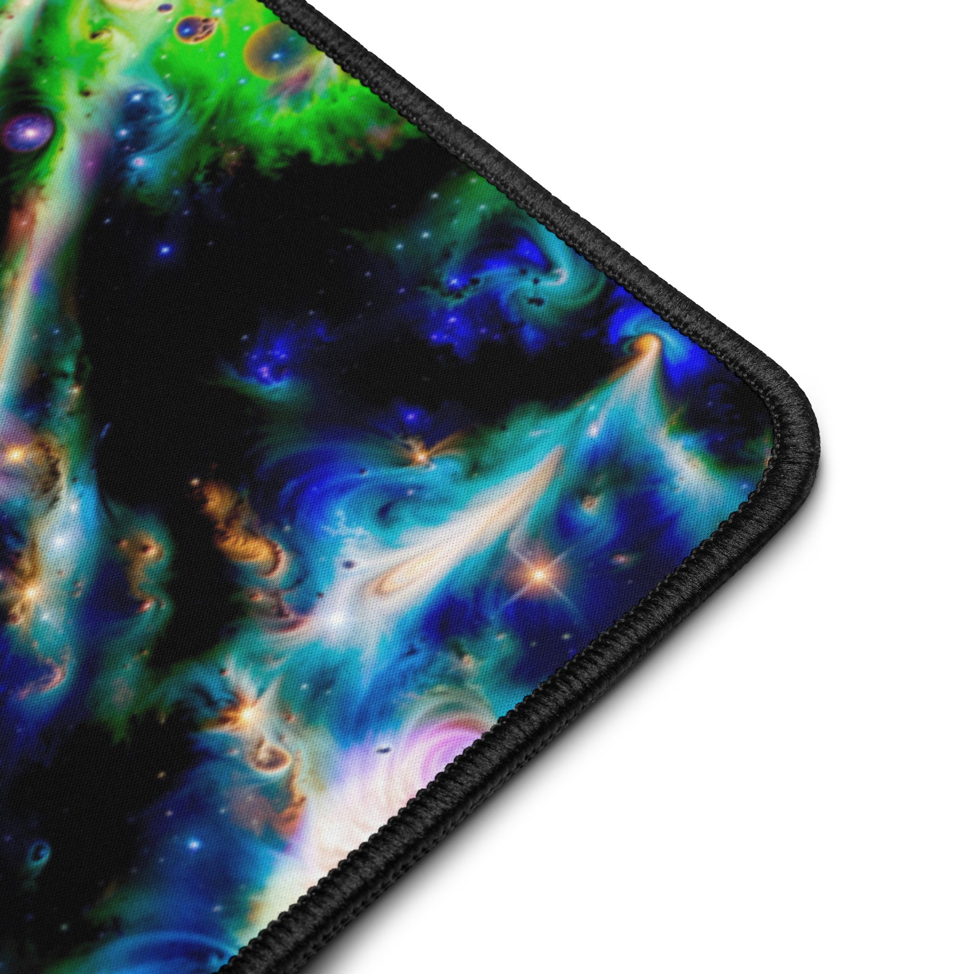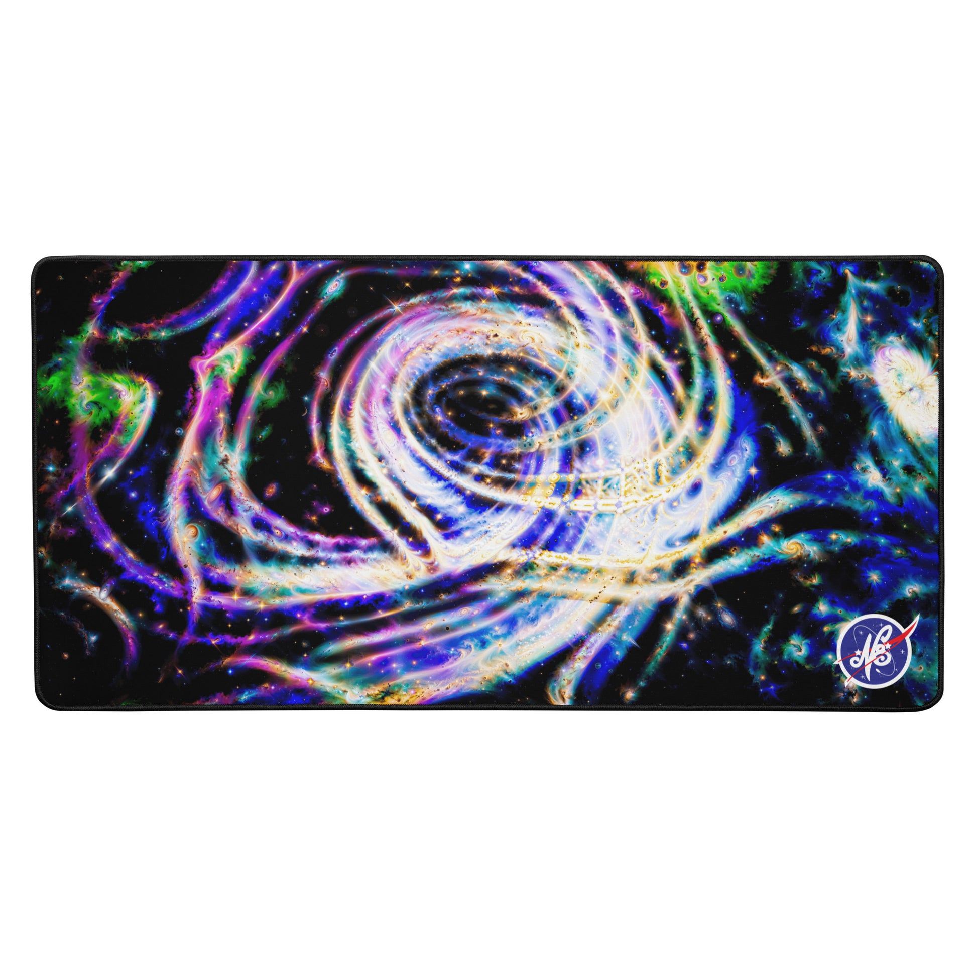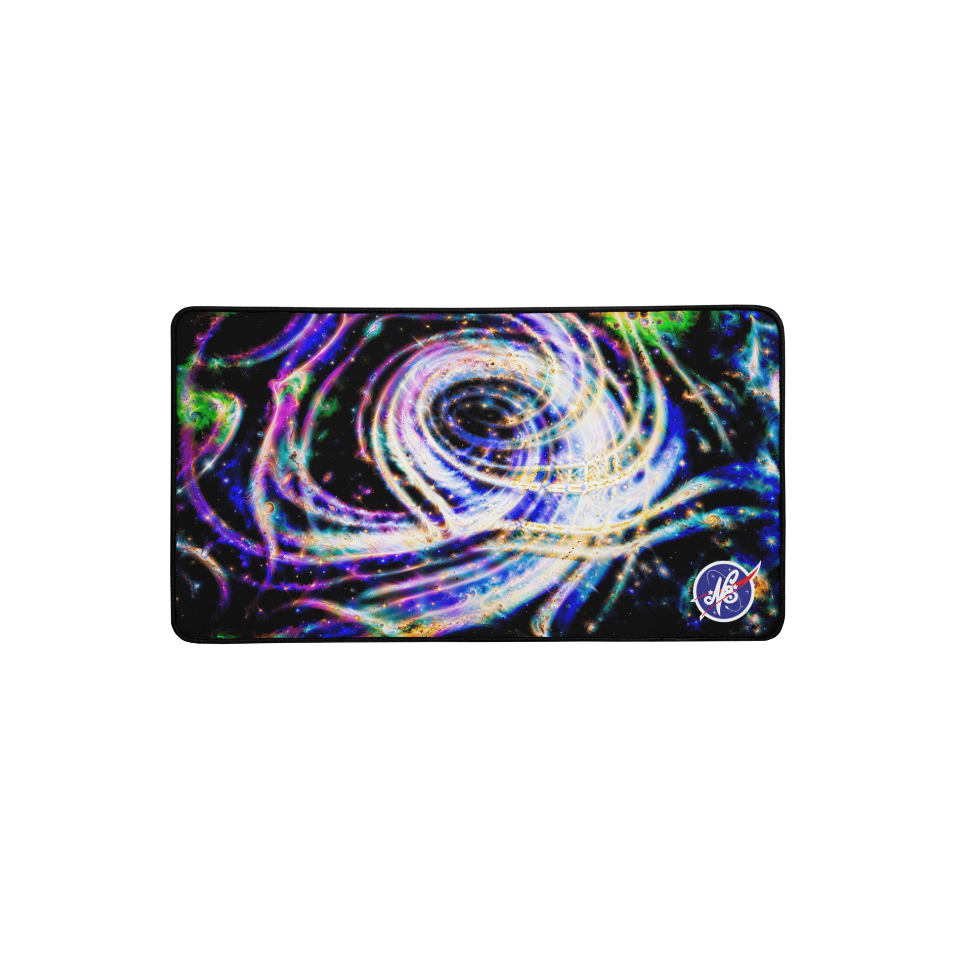 Perfect for galactic gaming sessions, or conquering cosmic computational projects at your desktop, this smooth, anti-slip surface locks your setup in orbit. These fully expansive images of N8's Intergalactic glass work offer light-years of space with vibrant edge-to-edge designs, while the hemmed edges ensure your mat stays intact through your all-nighter side quests.
