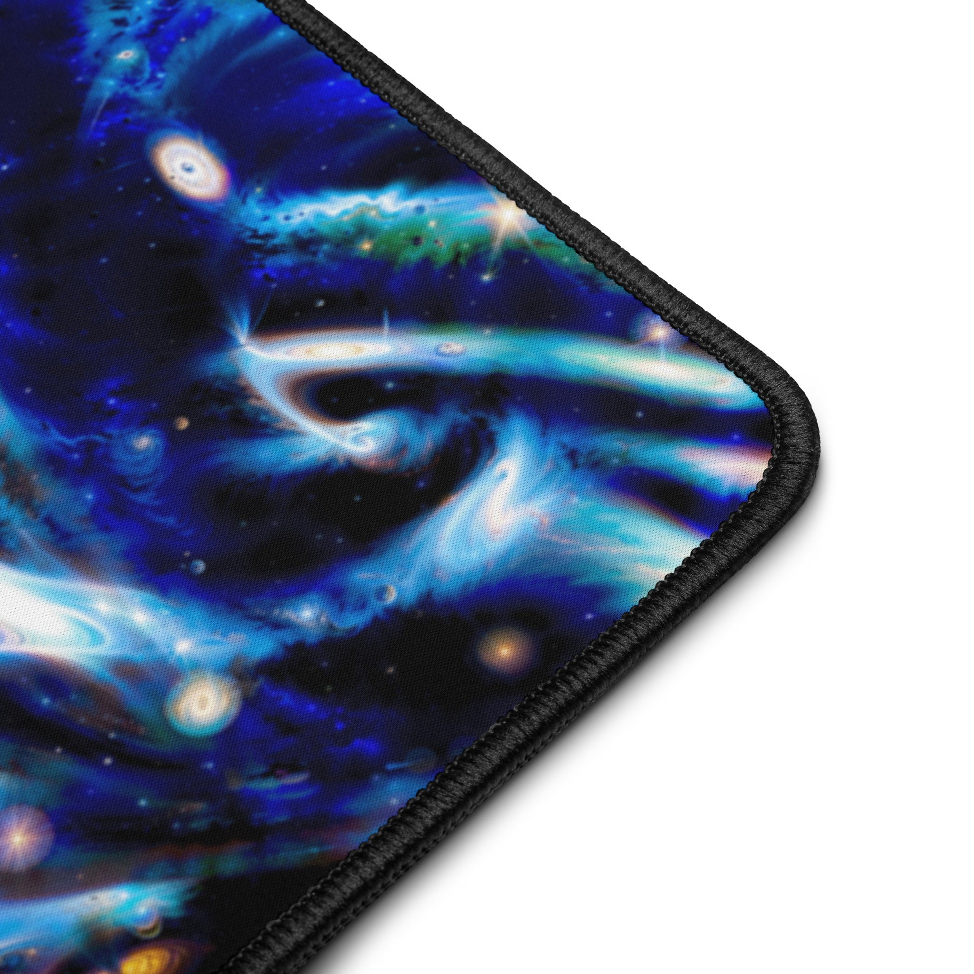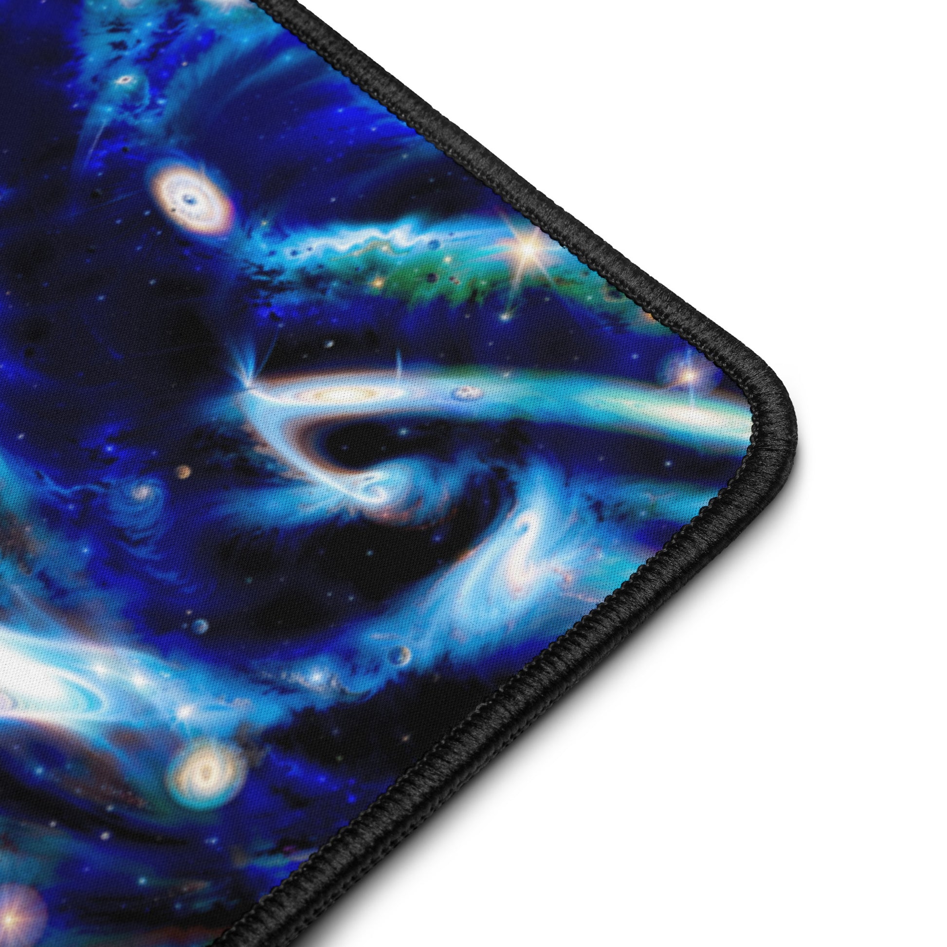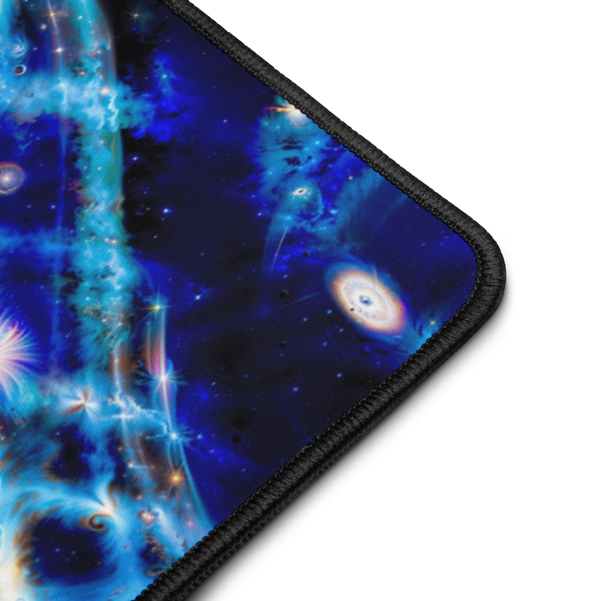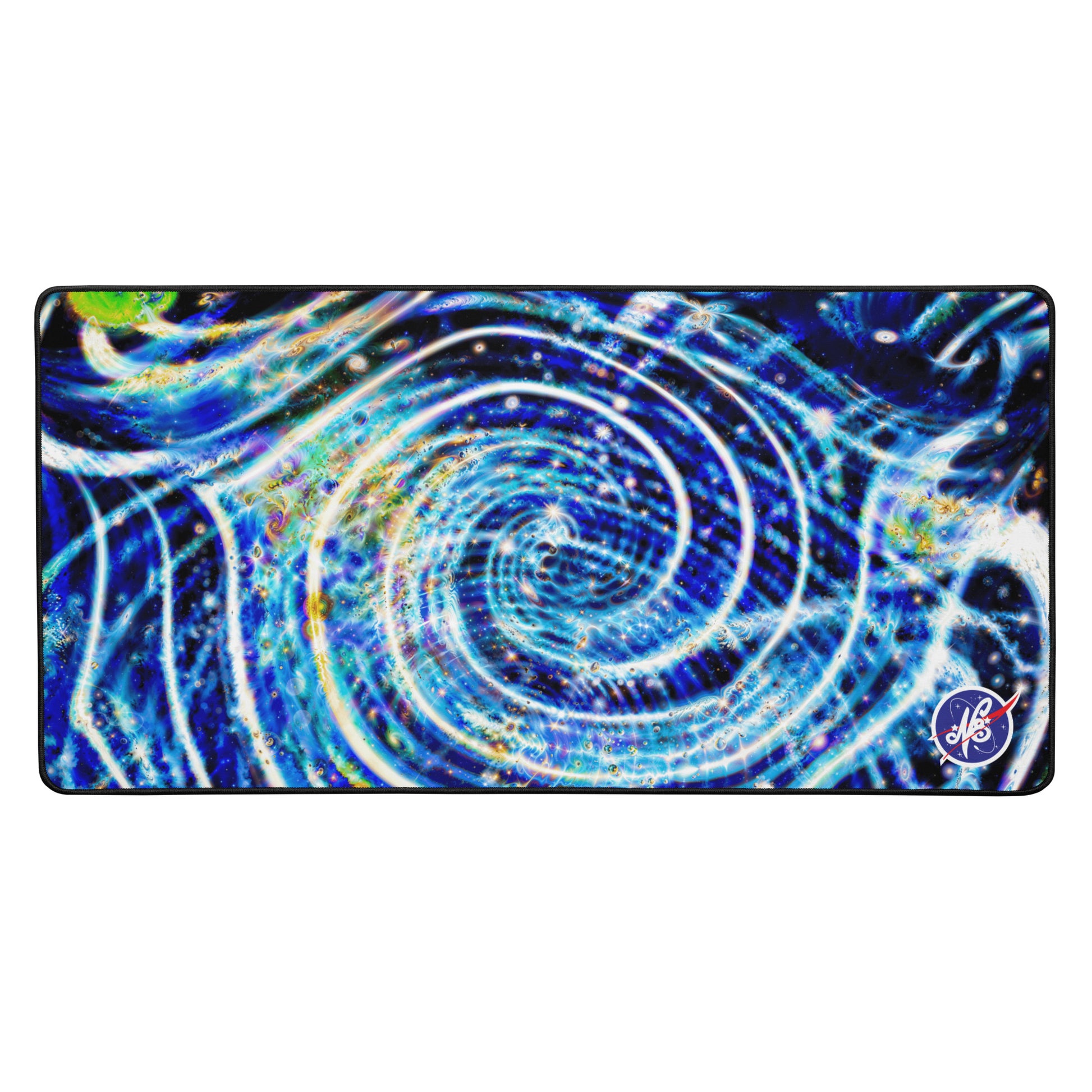 Perfect for galactic gaming sessions, or conquering cosmic computational projects at your desktop, this smooth, anti-slip surface locks your setup in orbit. These fully expansive images of N8's Intergalactic glass work offer light-years of space with vibrant edge-to-edge designs, while the hemmed edges ensure your mat stays intact through your all-nighter side quests.