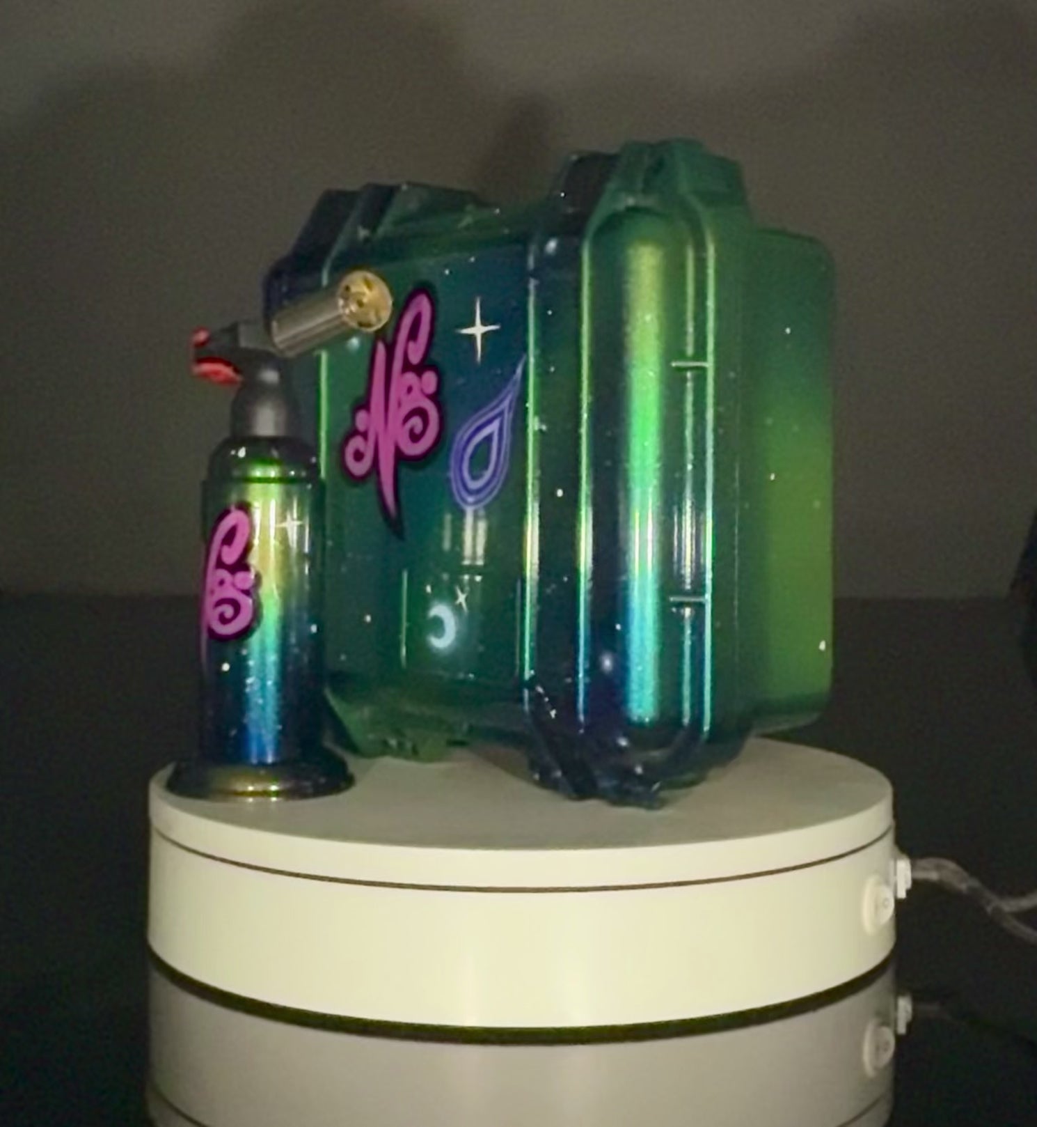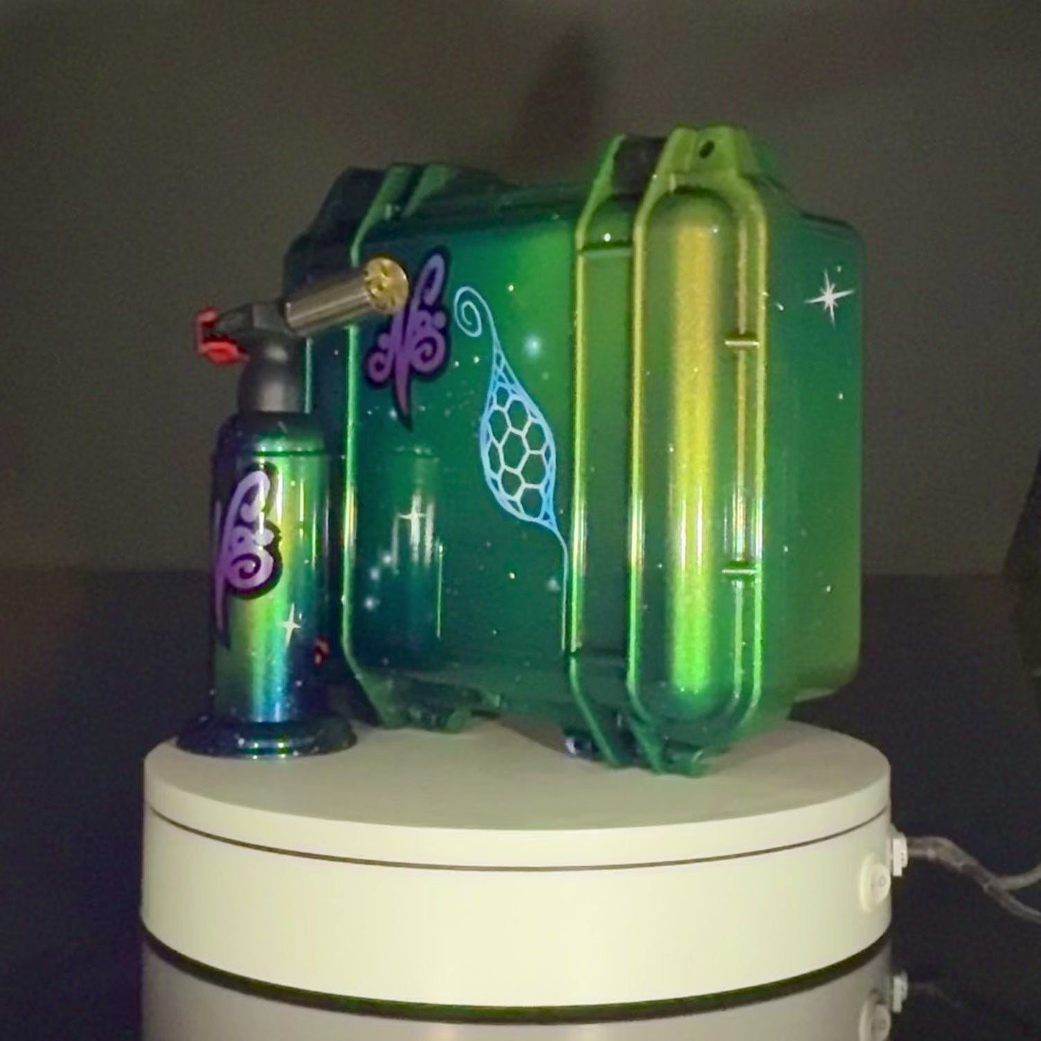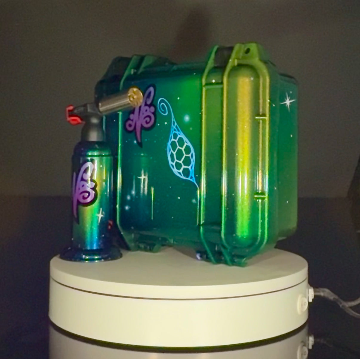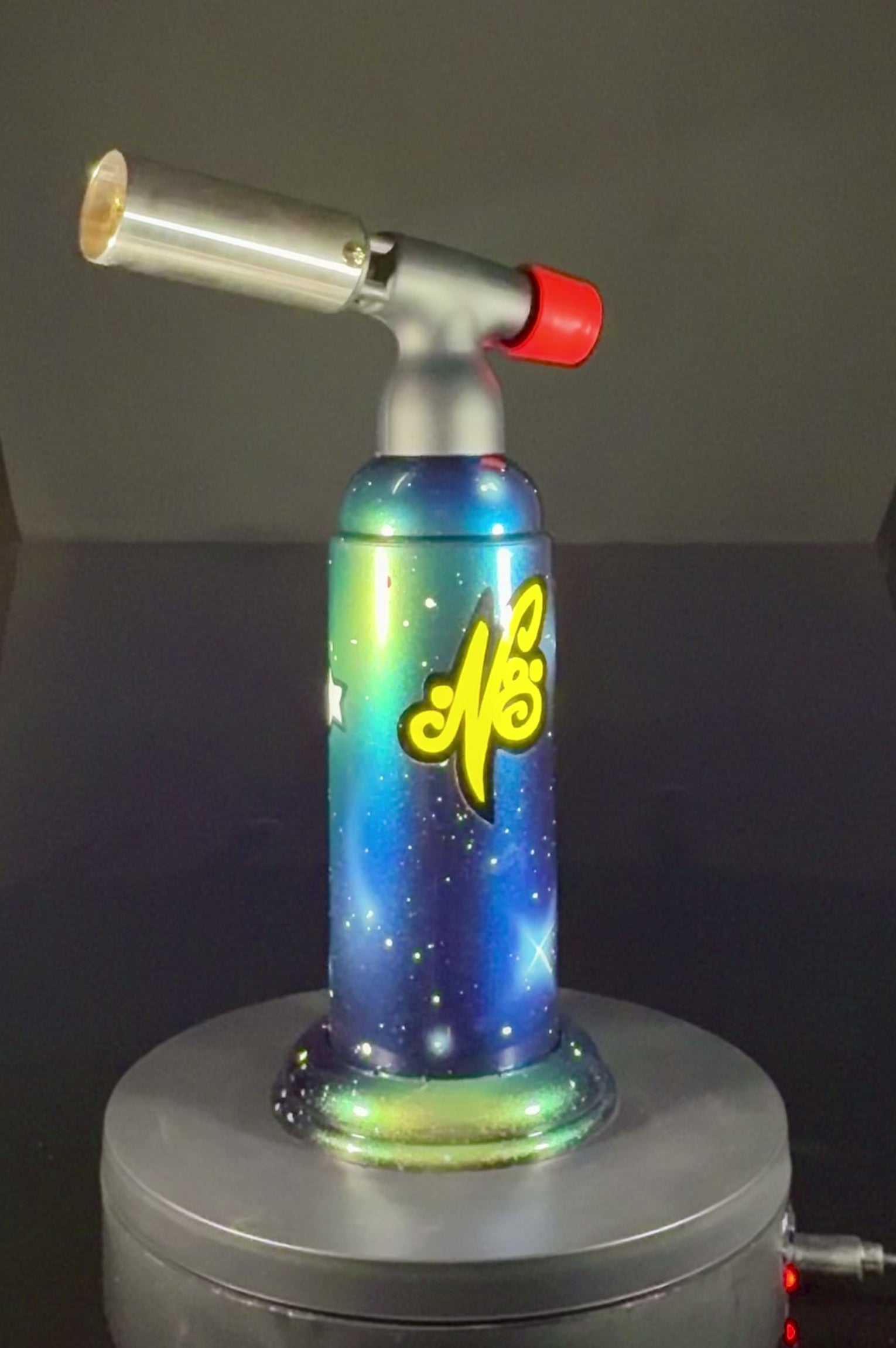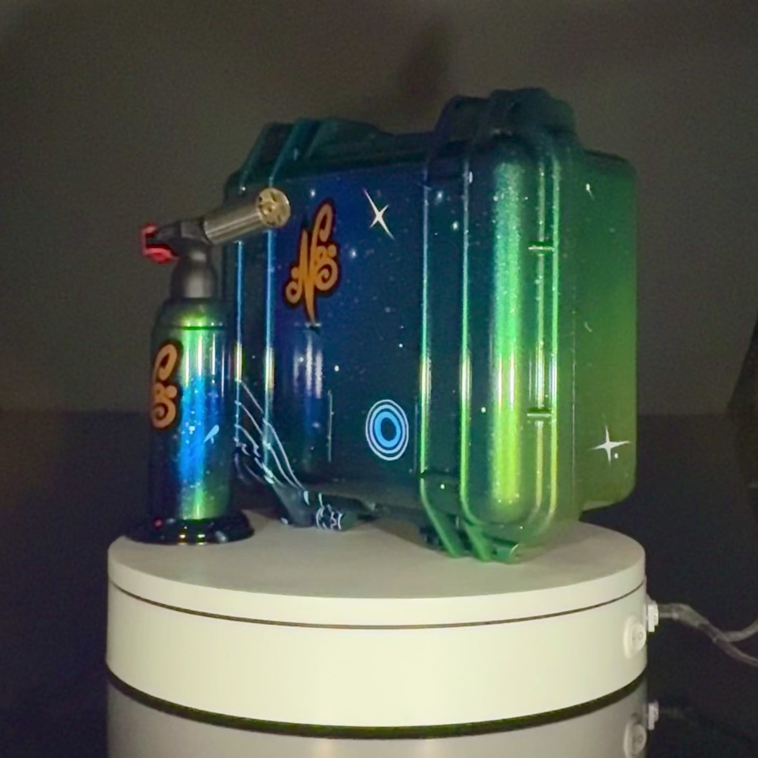 These N8-branded Pelican Brand 1200 cases and Blazer Big Shot torches were custom painted by Beyond Grasp to match N8's Intergalactic style. This isn't just spray paint either! This is a very high-quality and durable automotive paint and clear coat, ensuring your set will look good for a very very very very long time...no matter what conditions your space travels take you thru!