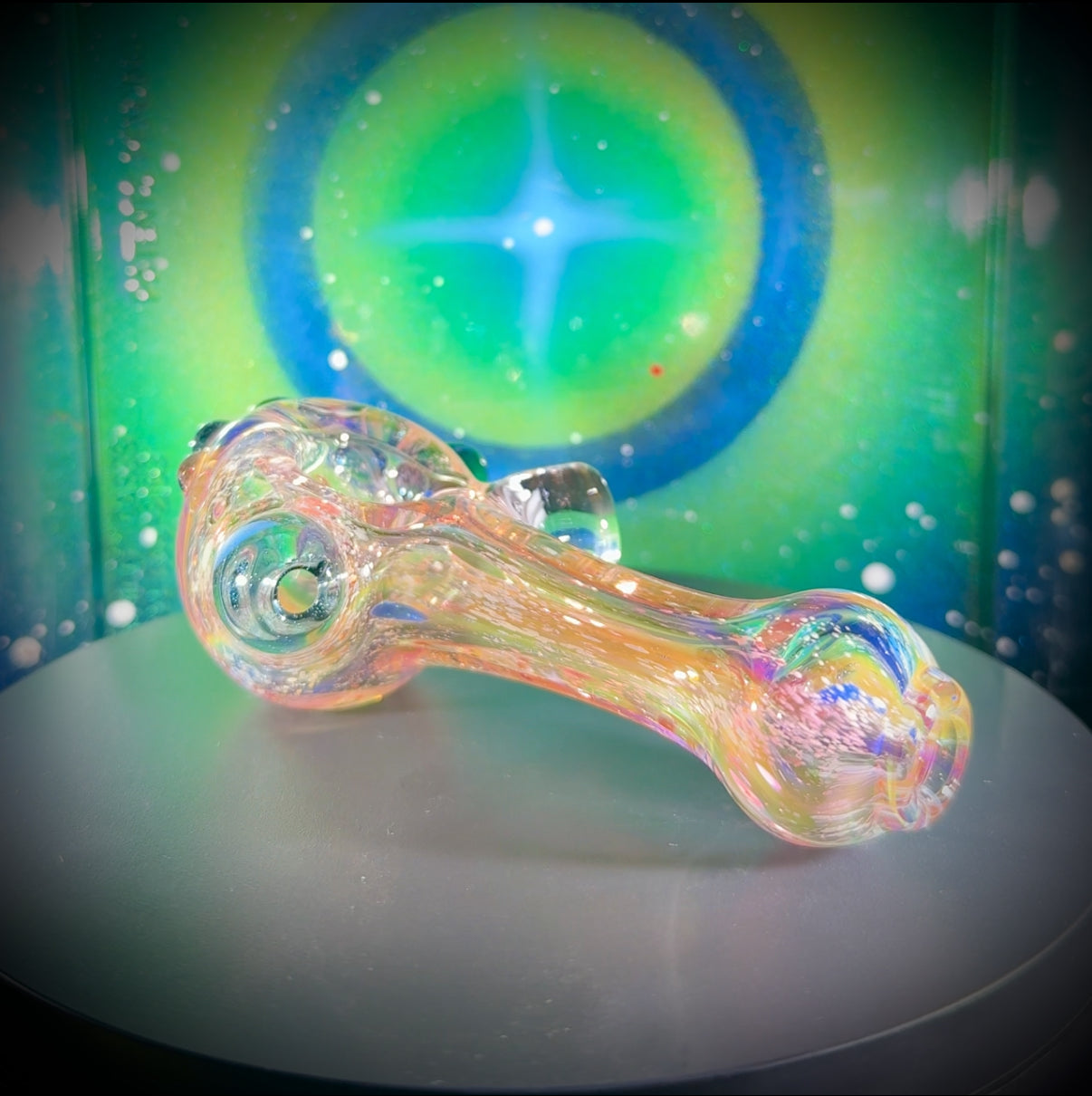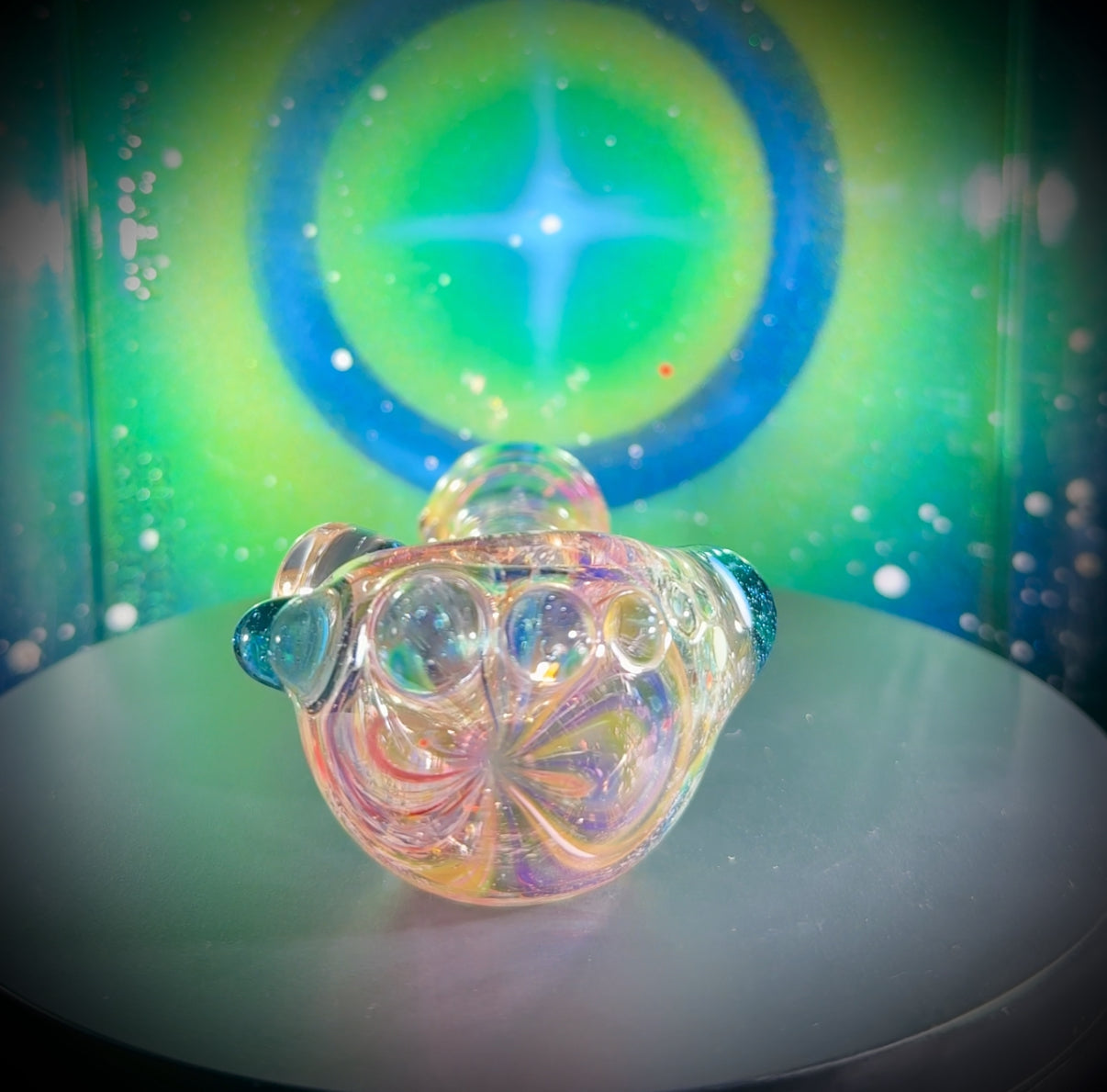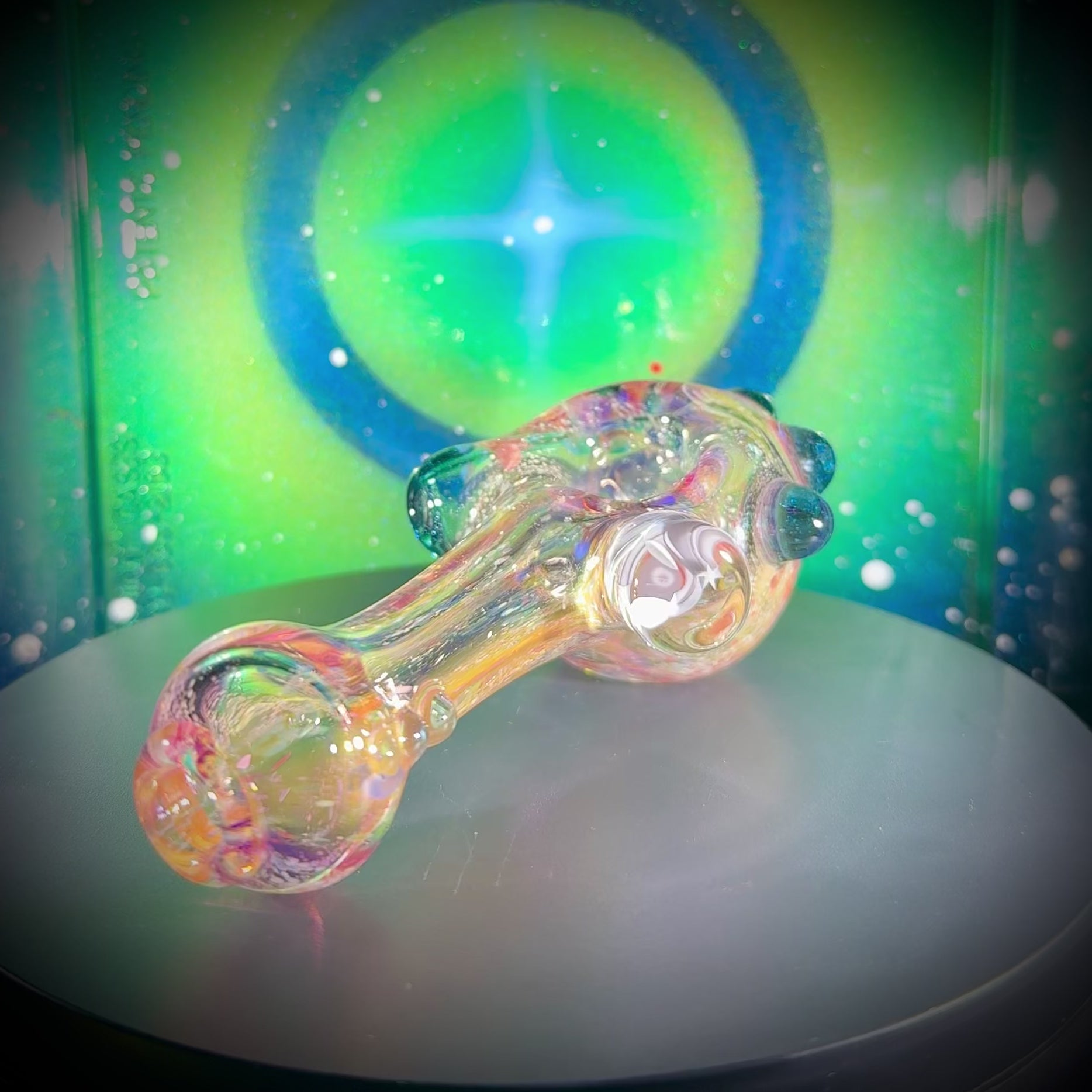 NEW Solo Race2Space Handpipe. 3-spiraling stars murrine marble and Atomic Stardust Sparkle (Blue UV) accents and carb.