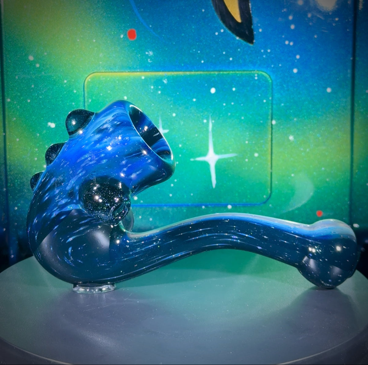 NEW Solo Deep Space Sherlock with a 3 spiraling UFO's murrine marble and Atomic Stardust Sparkle (Blue UV) accents and carb.