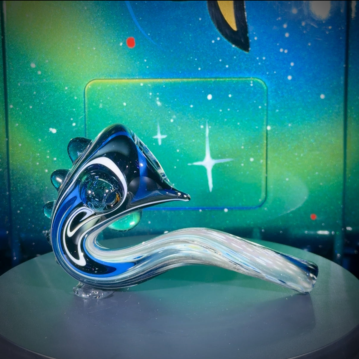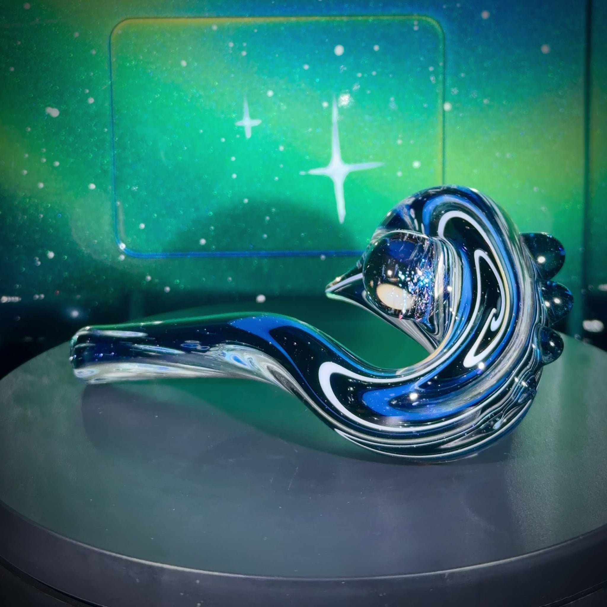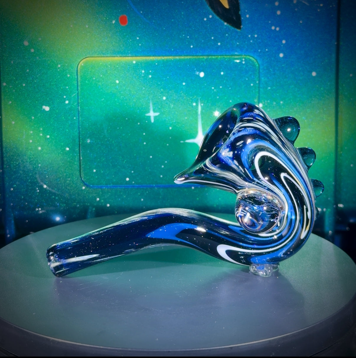 NEW Solo Deep Space Sherlock with a 3 spiraling UFO's murrine marble and Atomic Stardust Sparkle (Blue UV) accents and carb.