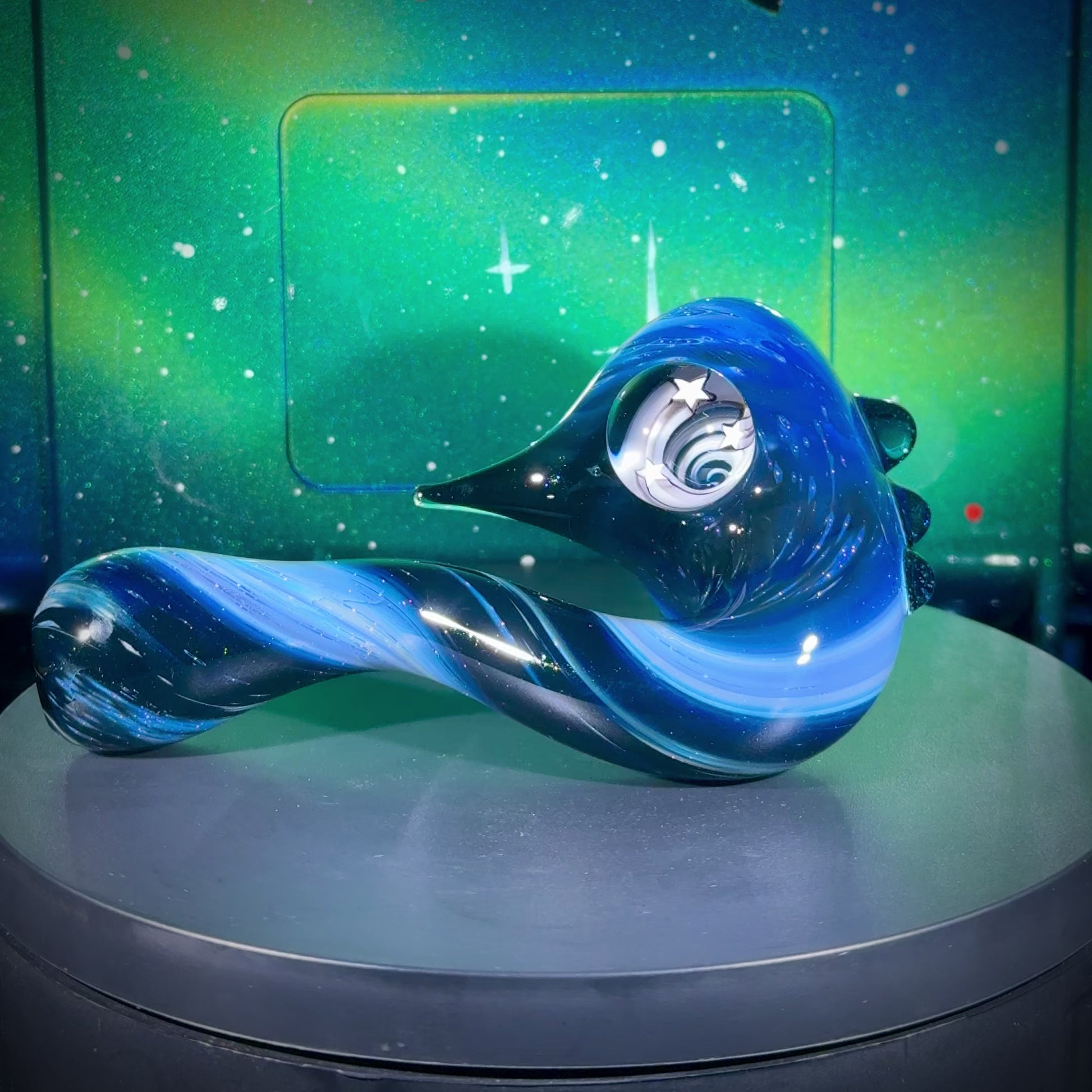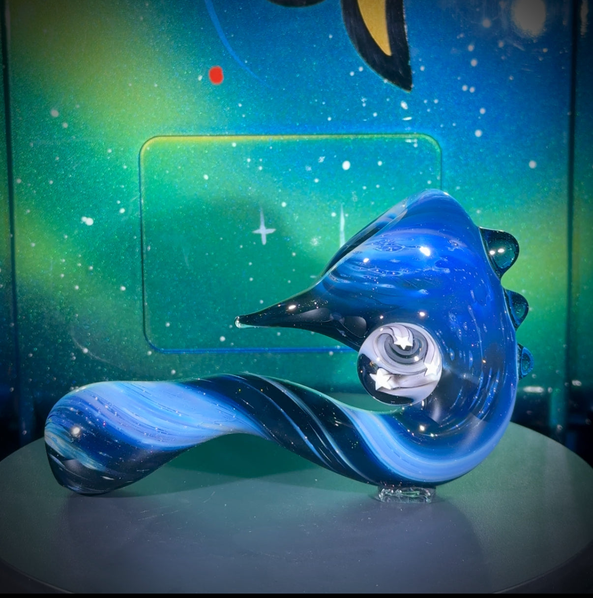 NEW Solo Deep Space Sherlock with a 3 spiraling UFO's murrine marble and Atomic Stardust Sparkle (Blue UV) accents and carb.