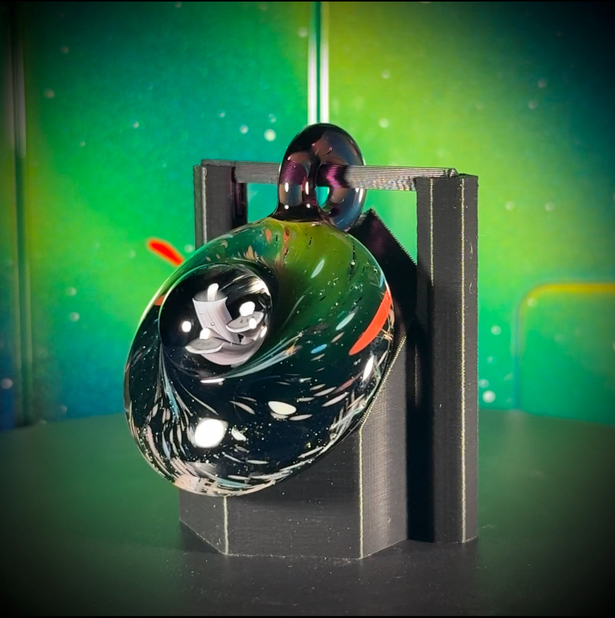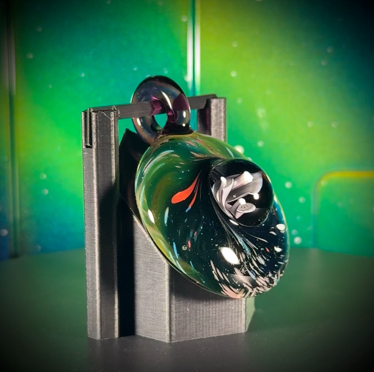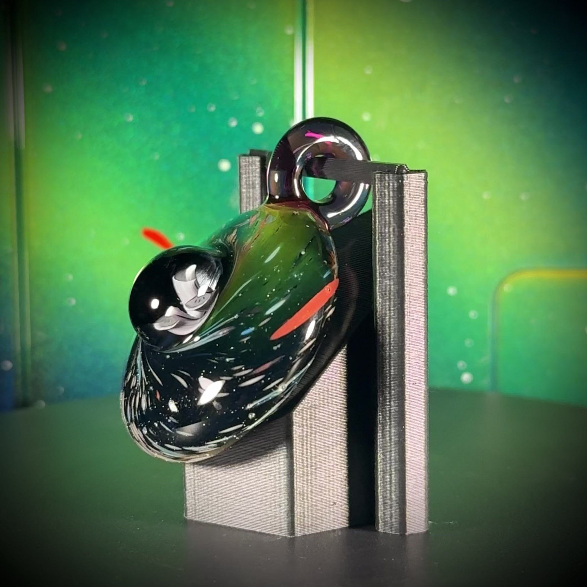 NU-Style spiraling UFO's with Gold Amethyst loop. Measures 39mm across.